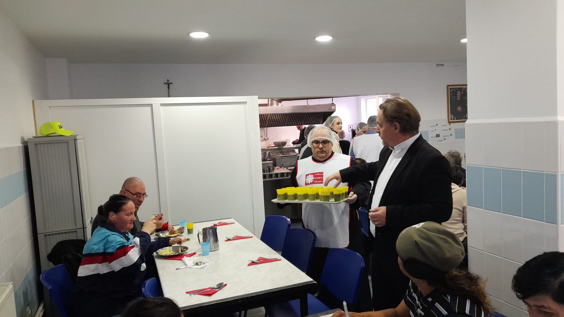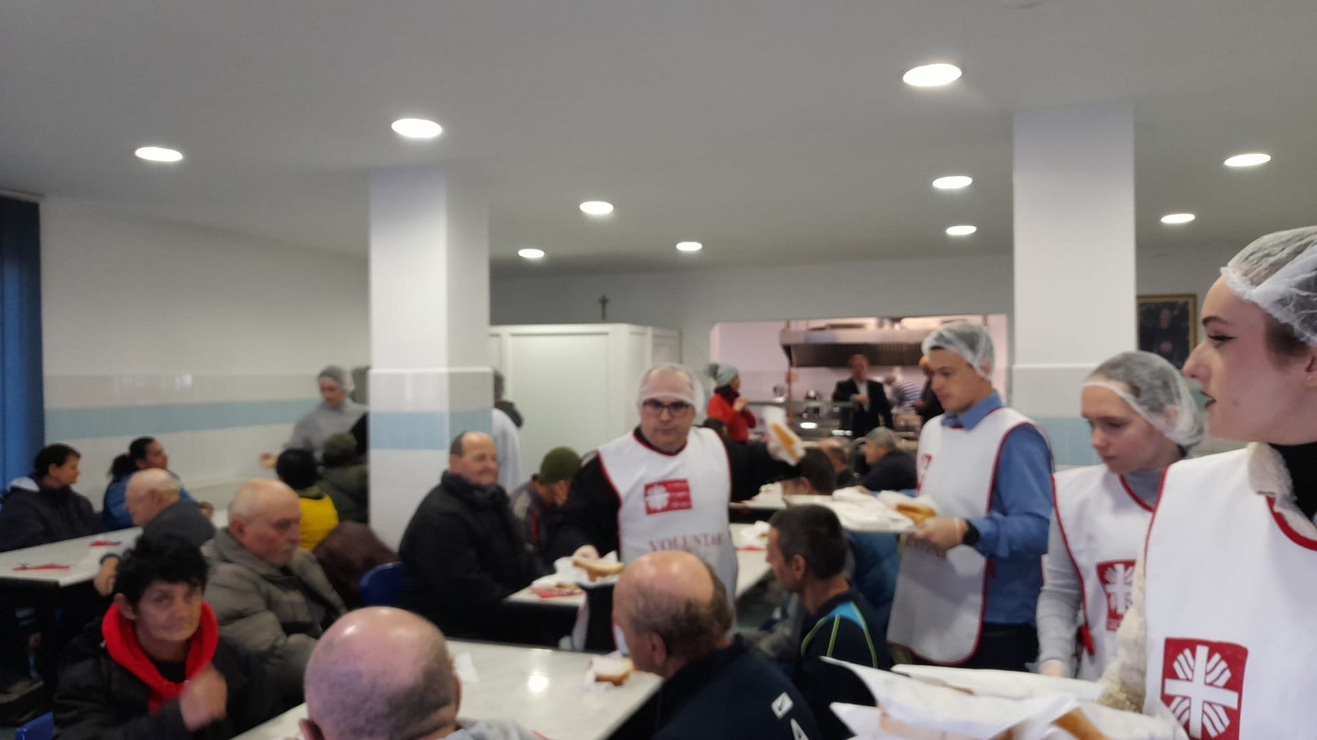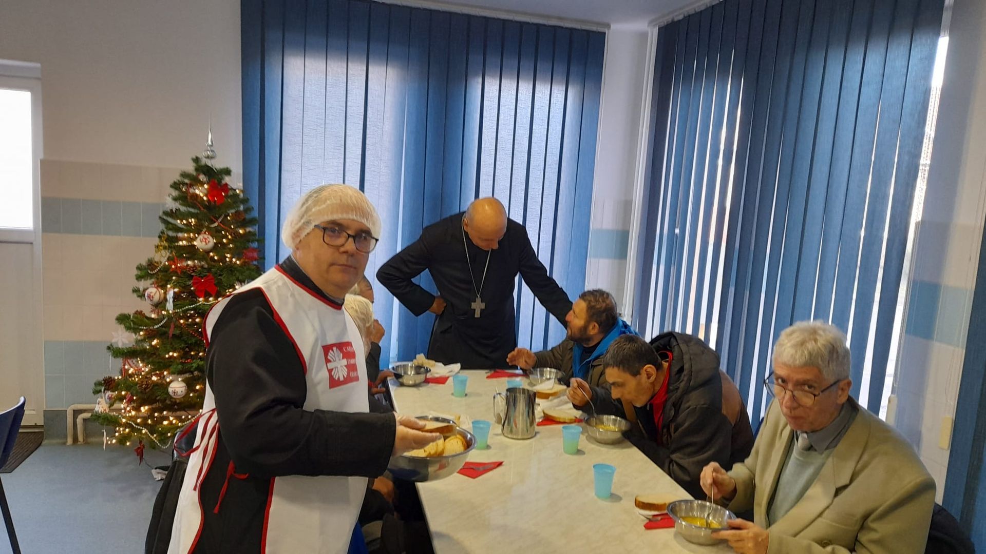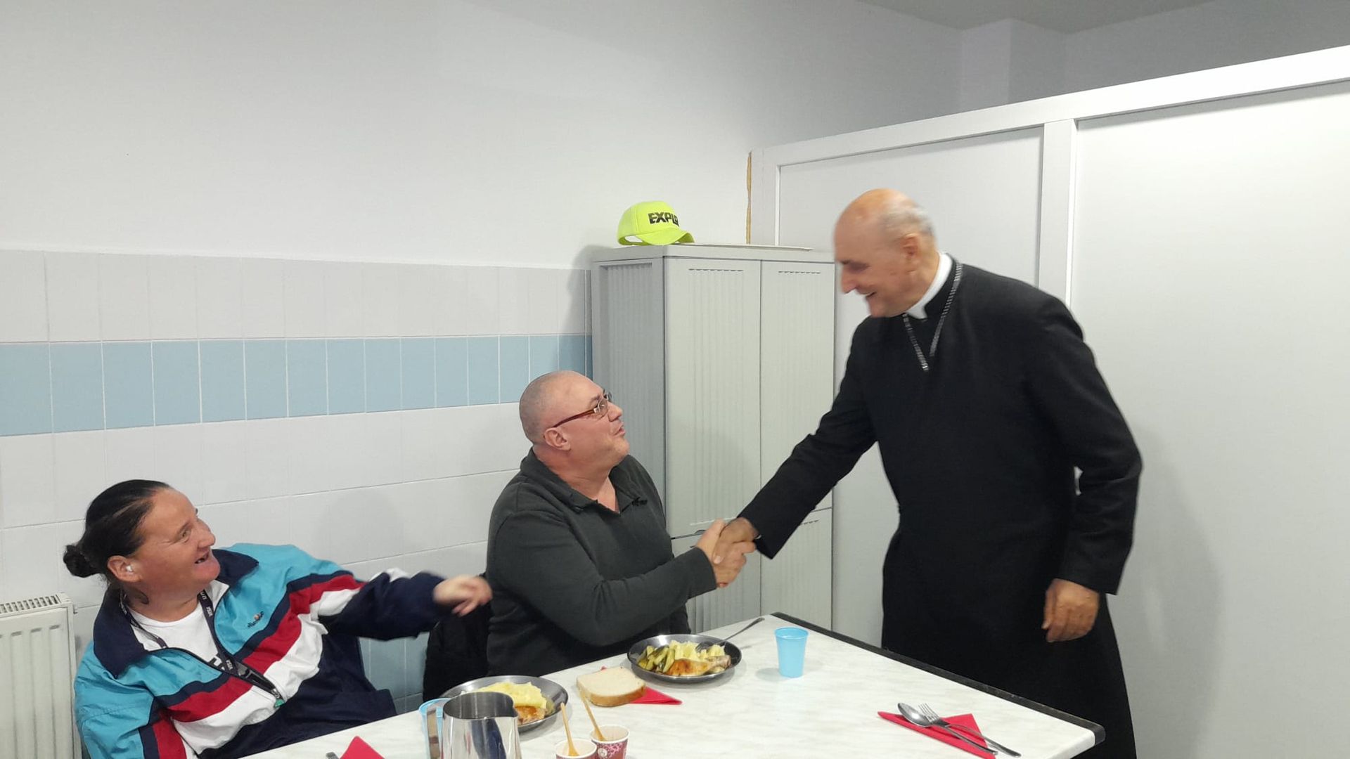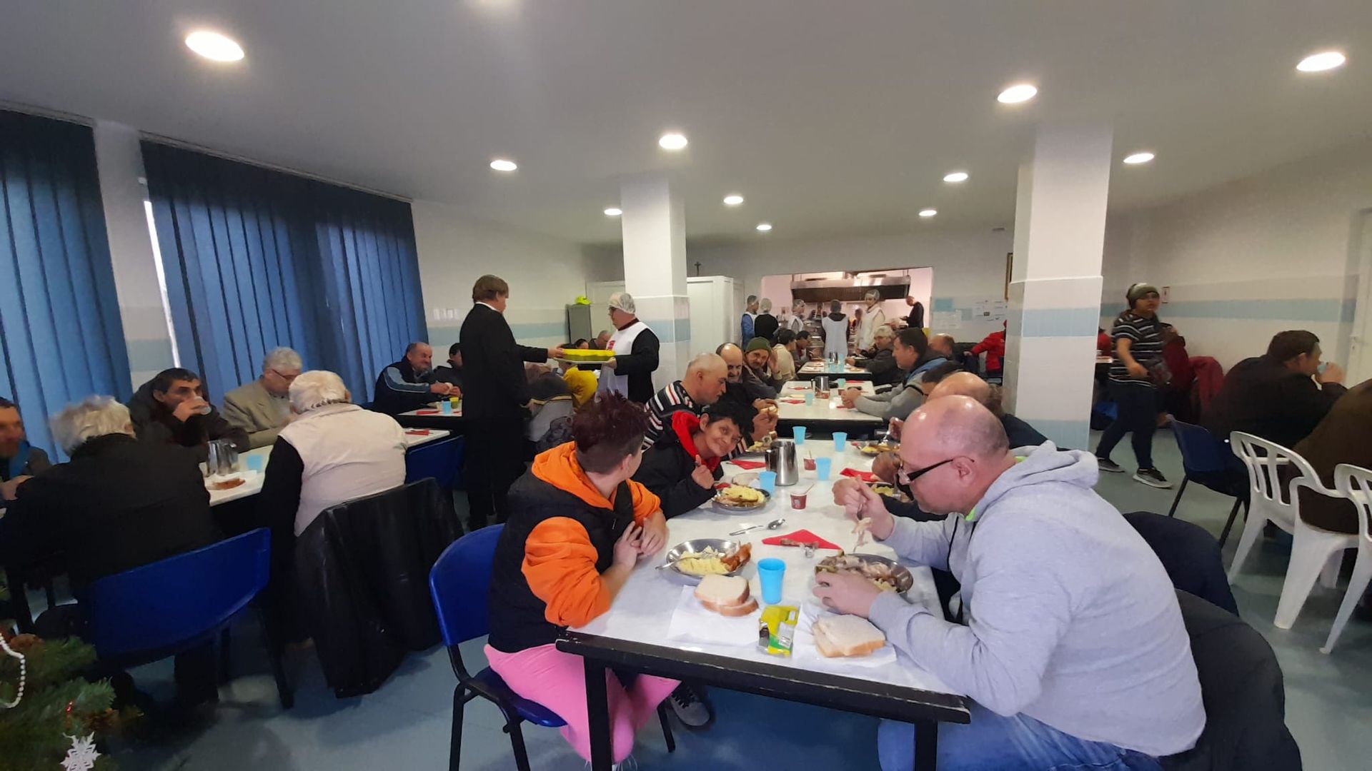 Avându-i alături pe voluntarii însoțiți de coordonatorul lor, pe președintele asociației, pr. Todorean Olimpiu, pe una dintre practicantele care își face stagiul de practică la cantina socială, dar și pe oaspeții noștri: PSS Virgil Bercea, episcop greco-catolic al Eparhiei de Oradea, și secretarul Eugen Ivuț, am deschis ușa cantinei invitându-i pe toți cei care s-au adunat, cu nerăbdare, pentru masa de prânz.