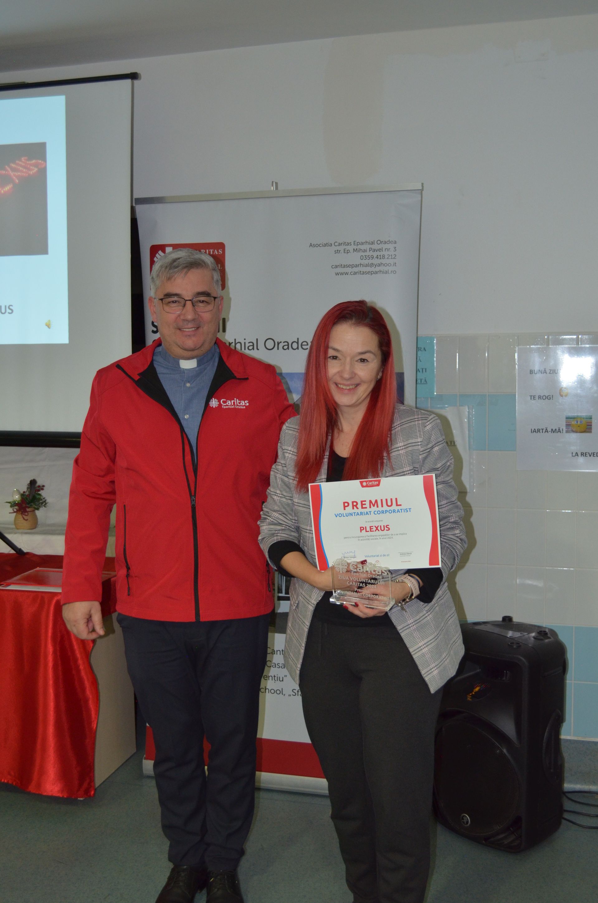 „Bună seara tuturor! N-am pregătit un speech, pentru că știam că o să fim așa, ca în familie, într-un cerc restrâns. Într-o lume în care oamenii aleargă după bani și alte privilegii, există voluntariatul și voluntari. Adică aceia dintre noi care rup din timpul lor și din sufletul lor și-l dăruiesc celor aflați în nevoie, pentru a aduce un plus de bine în comunitate. Datorită faptului că există voluntari, avem proiecte, programe și servicii sociale în comunitate atât de importante și de utile care, fără existența voluntarilor, nu ar fi posibile. Știm și noi, cei de la Direcția de Asistență Socială, ce înseamnă să avem parte de sprijinul voluntarilor. Anul acesta un număr important de voluntari ni s-au alăturat și, datorită lor, derulăm un program foarte important în comunitate, acela de meditații gratuite pentru copii, pentru copiii de gimnaziu și suntem extrem de fericiți că ni s-au alăturat în număr mare, așa cum spuneam. Mă gândeam, în timp ce veneam spre dumneavoastră, că, de multe ori, în zilele libere, în weekend-uri, mă întâlneam cu domnul părinte. Eu eram cu piciul meu, mergeam în parc și domnul părinte venea sau pleca la cantina socială., desigur în perioade de sărbători, în weekend-uri... asta înseamnă voluntariatul. Evenimentul de astăzi este un prilej foarte bun să ne arătăm aprecierea față de dumneavoastră, față de voluntari și vreau pe această cale să vă felicit și să felicit și Asociația Caritas Eparhial, pentru că reușește să vă țină aproape, pentru că reușește să atragă mulți tineri înspre asociație și asta este minunat! Noi știm, cei care activăm în domeniul social, cu câte greutăți ne confruntăm, dar ce aș vrea eu să vă spun, să mulțumesc, în primul rând Asociației Caritas Eparhial, pentru că este un partener de nădejde al Direcției de Asistență Socială Oradea și să vă spun că, într-o lume în care putem fi orice, să alegem să fim în continuare buni! Vă felicit și vă mulțumesc tare mult pentru invitație! (Anca Grama, director executiv la Direcția de Asistență Socială Oradea).
