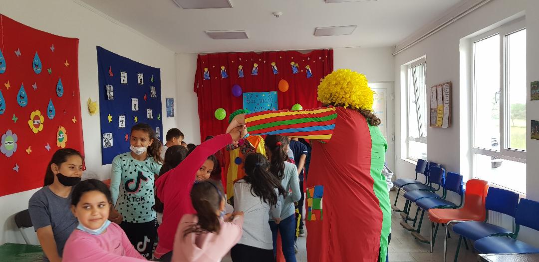 Activitatea voluntarilor clovni a început cu exerciții de gimnastică, continuând cu dansuri și jocuri pe care copiii le adoră. Nu a lipsit nici pictura de pe fețele senine ale copiilor: fluturași, căței, pisicuțe, floricele, inimioare și curcubeie, toate atât de frumos colorate... Micuții școlari au primit câte un balon modelat în forma și de culoarea dorită, datorită mâinilor iscusite ale voluntarilor care au ales să fie alături de cei mici, într-o zi atât de importantă pentru ei! După participarea la activități, copiii s-au bucurat de dulciurile oferite, ca în fiecare an, de doamna Aurica Ban.