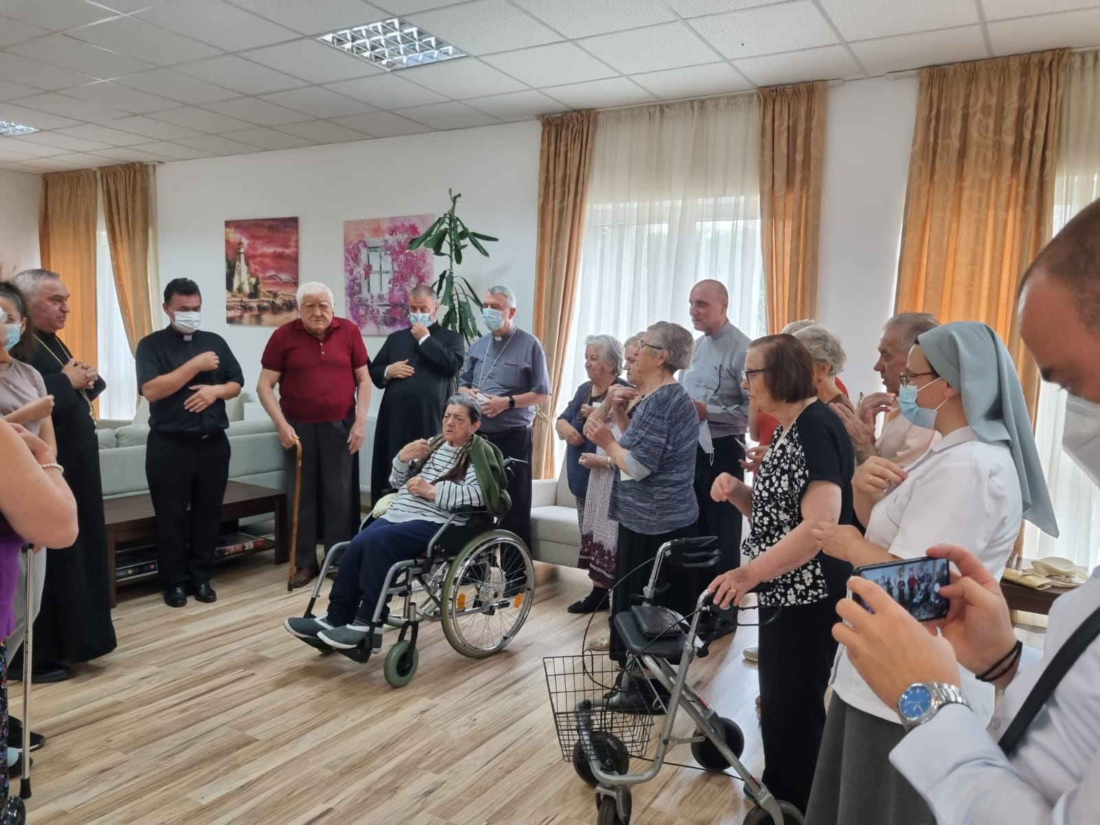 Vizita înalților oaspeți a fost un eveniment de seamă pentru rezidenții ”Casei Frențiu” care au fost vizibil emoționați și încântați de faptul că cei doi episcopi i-au vizitat.