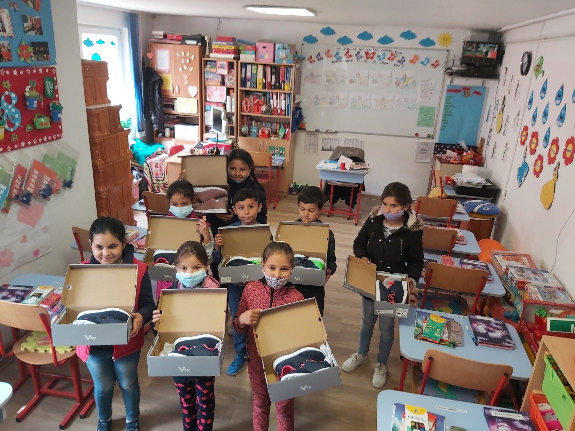 Bucuria și surprinderea au fost maxime, cu atât mai mult cu cât, deși este o perioadă aglomerată, cutiile cu surprize au fost oferite de doamnele învățătoare - care ocupă un loc cald, primitor și sigur în sufletele acestor micuți, dar și de președintele asociației, pr. Olimpiu Todorean - care a găsit timp pentru a-l dedica școlarilor noștri, dar și zâmbete pentru a alina suflețele fragile de copii încercate crunt de acest an pandemic. Astfel, copiii nerăbdători să probeze încălțămintea primită au luminat centrul cu intensitatea emoțiilor pe care le-au trăit.
