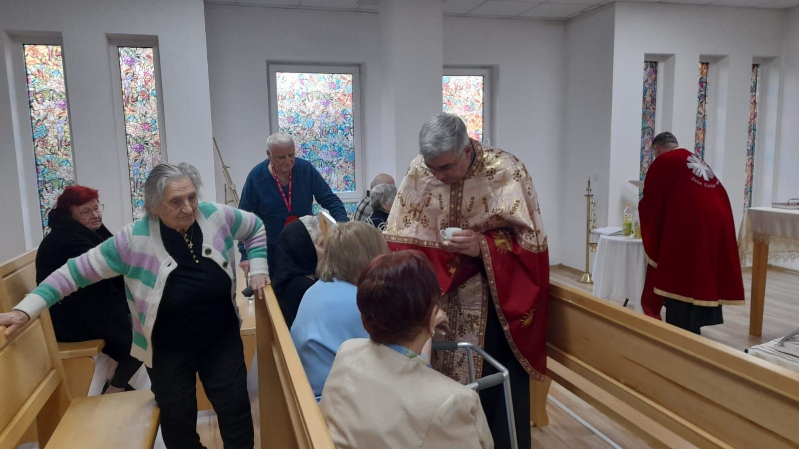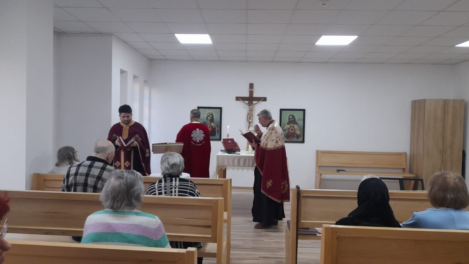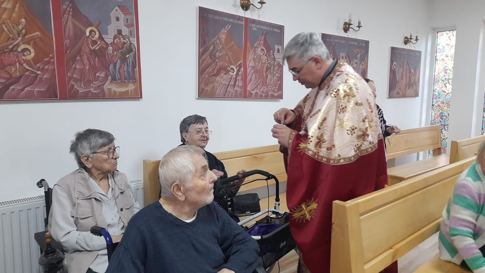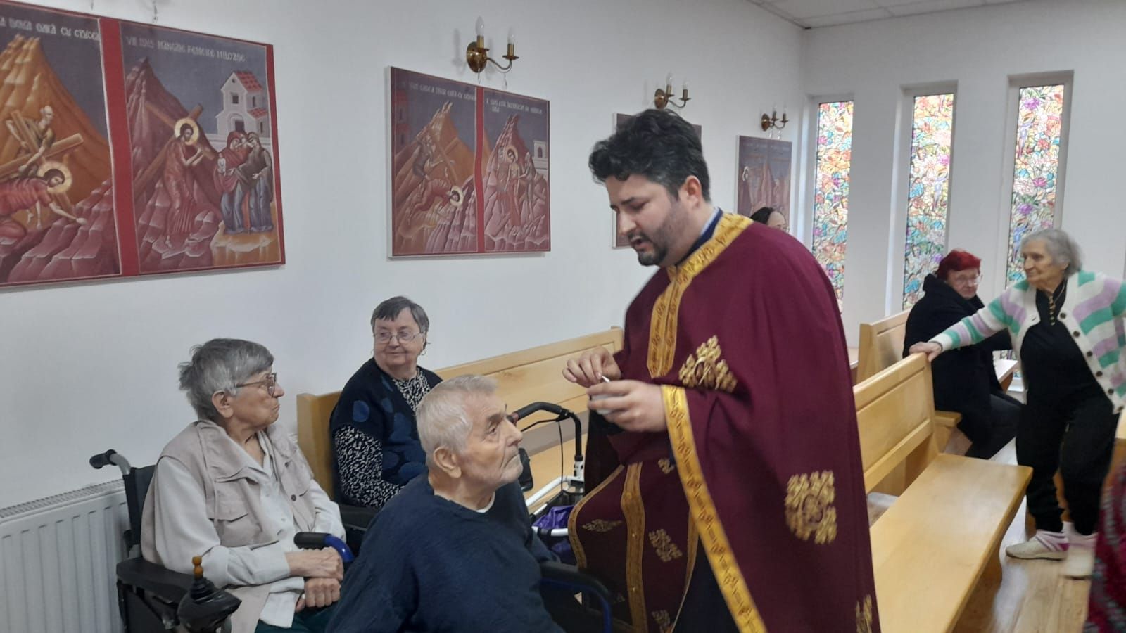 În cursul după-amiezii de ieri, 20.03. 2025, la porunca Mântuitorului „Peste bolnavi mâinile veți pune și bine le va fi” (Marcu 16.18) și îndemnați de cuvintele Sfântului Apostol Iacov, rudenia Domnului: „Este cineva bolnav între voi? Să cheme preoţii Bisericii şi să se roage pentru el, ungându-l cu untdelemn, în numele Domnului. Şi rugăciunea credinţei va mântui pe cel bolnav şi Domnul îl va ridica, şi de va fi făcut păcate, se vor ierta lui. Mărturisiţi-vă deci unul altuia păcatele şi vă rugaţi unul pentru altul, ca să vă vindecaţi, că mult poate rugăciunea stăruitoare a dreptului” (Iacov 5, 14-16), la invitația pr. capelan Ilea Valentin, rezidenții „Casei Frentiu” s-au reîntâlnit în rugăciune, participând la Taina Sfântului Maslu. Rugăciunea a fost oficiată de pr. Olimpiu Todorean, pr. Alexandru Fiț și părintele Valentin Ilea.
