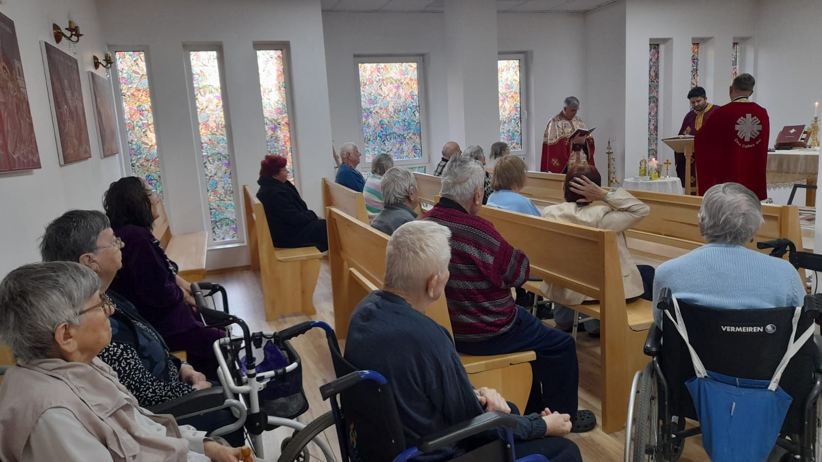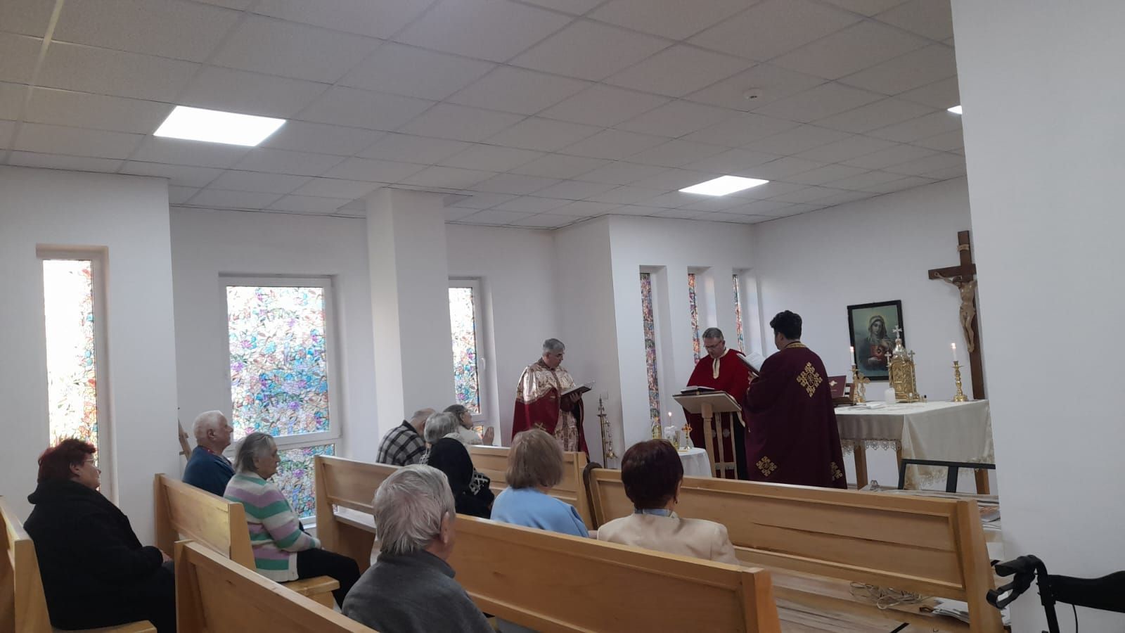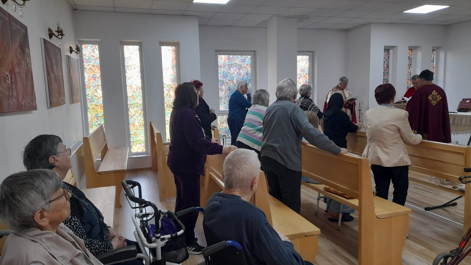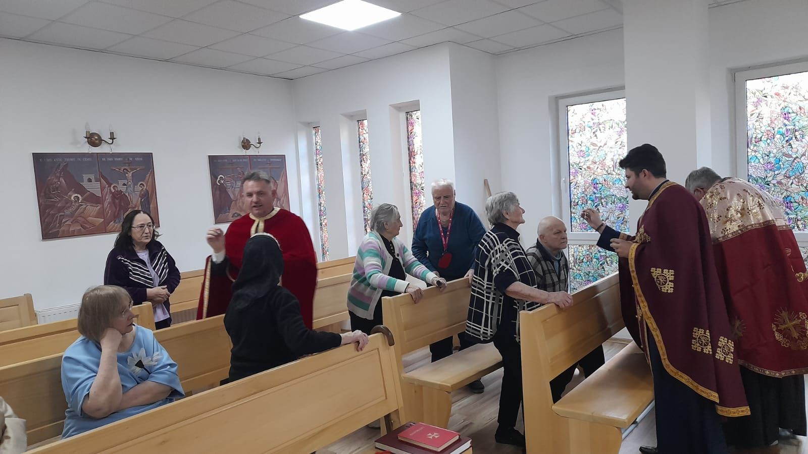 În cursul după-amiezii de ieri, 20.03. 2025, la porunca Mântuitorului „Peste bolnavi mâinile veți pune și bine le va fi” (Marcu 16.18) și îndemnați de cuvintele Sfântului Apostol Iacov, rudenia Domnului: „Este cineva bolnav între voi? Să cheme preoţii Bisericii şi să se roage pentru el, ungându-l cu untdelemn, în numele Domnului. Şi rugăciunea credinţei va mântui pe cel bolnav şi Domnul îl va ridica, şi de va fi făcut păcate, se vor ierta lui. Mărturisiţi-vă deci unul altuia păcatele şi vă rugaţi unul pentru altul, ca să vă vindecaţi, că mult poate rugăciunea stăruitoare a dreptului” (Iacov 5, 14-16), la invitația pr. capelan Ilea Valentin, rezidenții „Casei Frentiu” s-au reîntâlnit în rugăciune, participând la Taina Sfântului Maslu. Rugăciunea a fost oficiată de pr. Olimpiu Todorean, pr. Alexandru Fiț și părintele Valentin Ilea.