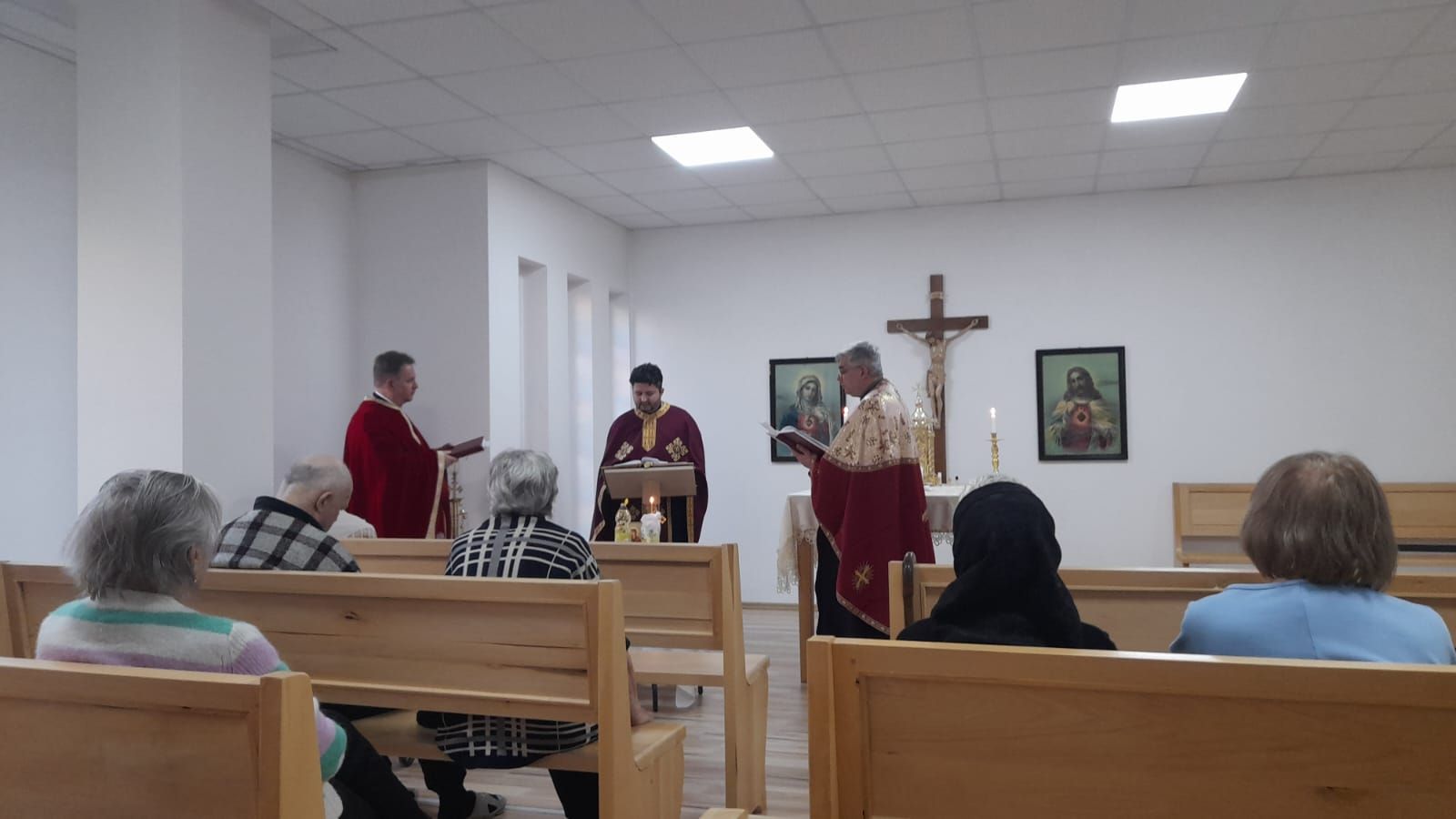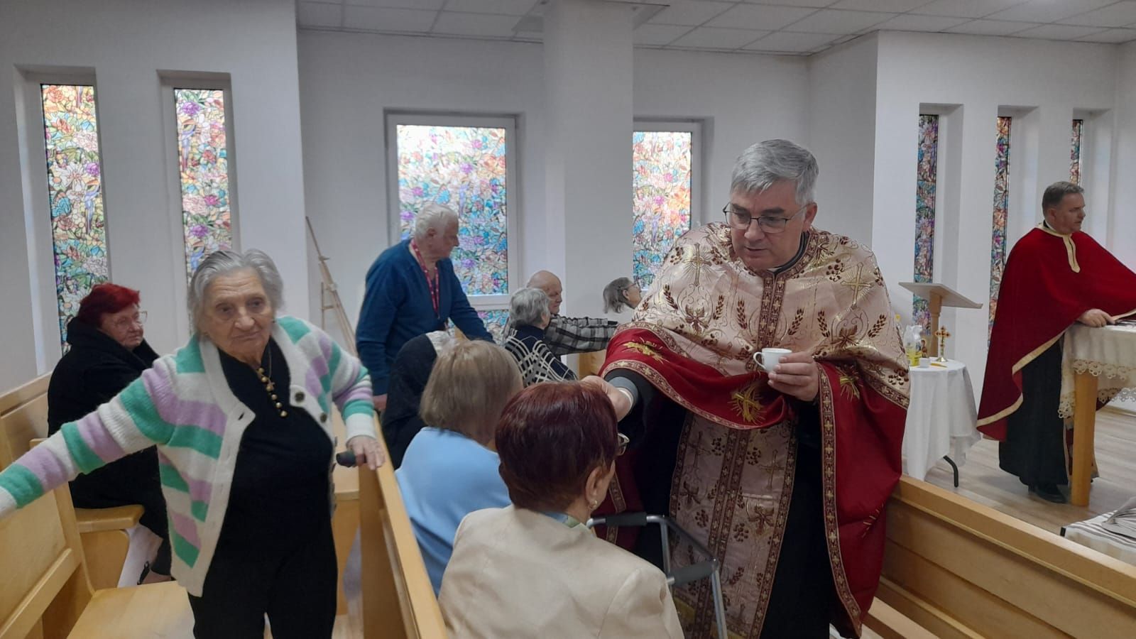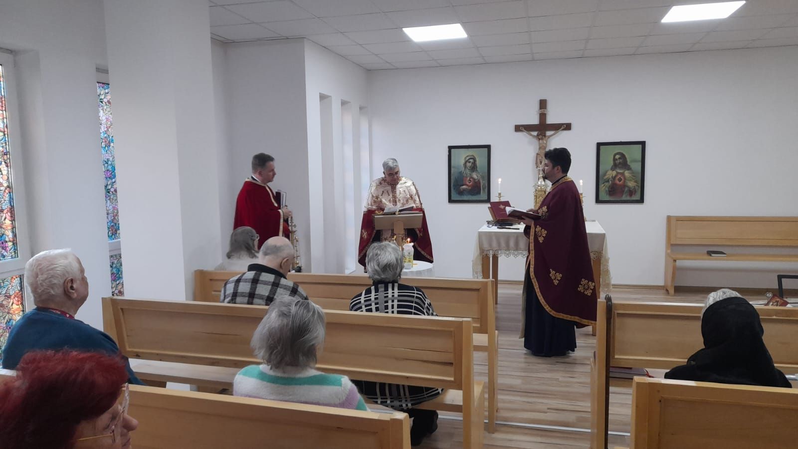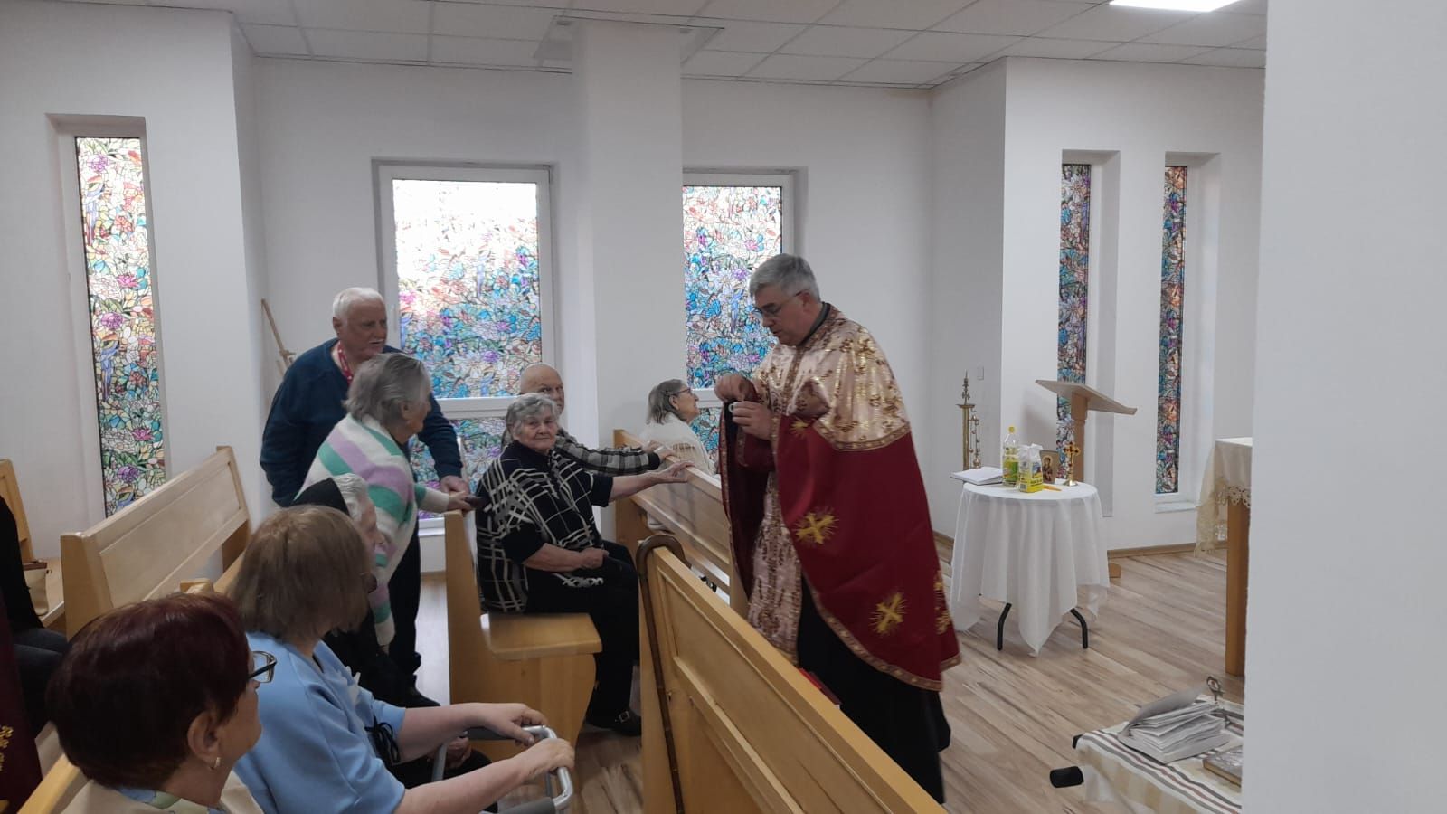 În cursul după-amiezii de ieri, 20.03. 2025, la porunca Mântuitorului „Peste bolnavi mâinile veți pune și bine le va fi” (Marcu 16.18) și îndemnați de cuvintele Sfântului Apostol Iacov, rudenia Domnului: „Este cineva bolnav între voi? Să cheme preoţii Bisericii şi să se roage pentru el, ungându-l cu untdelemn, în numele Domnului. Şi rugăciunea credinţei va mântui pe cel bolnav şi Domnul îl va ridica, şi de va fi făcut păcate, se vor ierta lui. Mărturisiţi-vă deci unul altuia păcatele şi vă rugaţi unul pentru altul, ca să vă vindecaţi, că mult poate rugăciunea stăruitoare a dreptului” (Iacov 5, 14-16), la invitația pr. capelan Ilea Valentin, rezidenții „Casei Frentiu” s-au reîntâlnit în rugăciune, participând la Taina Sfântului Maslu. Rugăciunea a fost oficiată de pr. Olimpiu Todorean, pr. Alexandru Fiț și părintele Valentin Ilea.