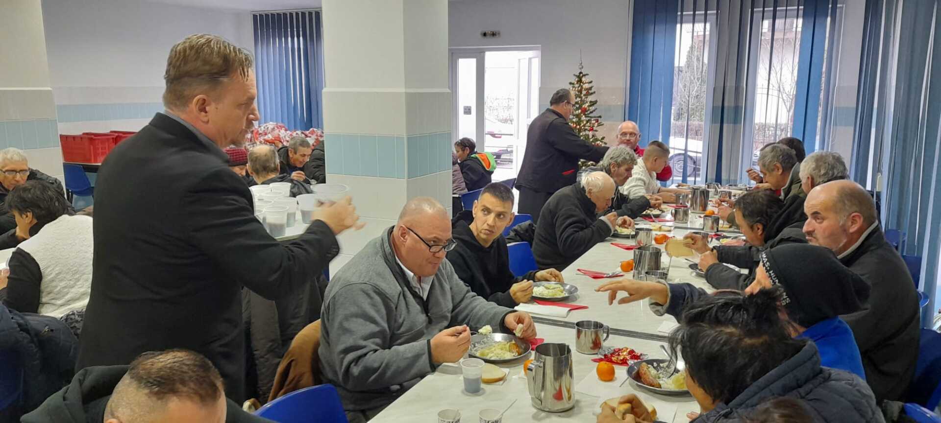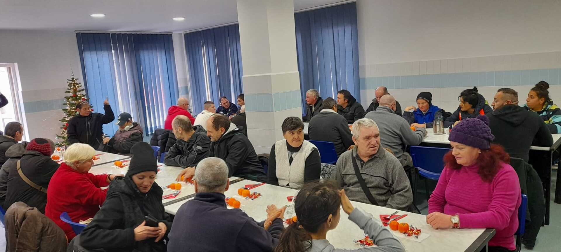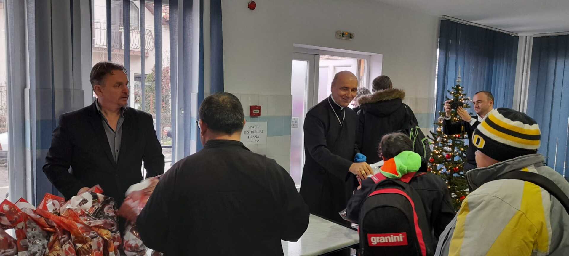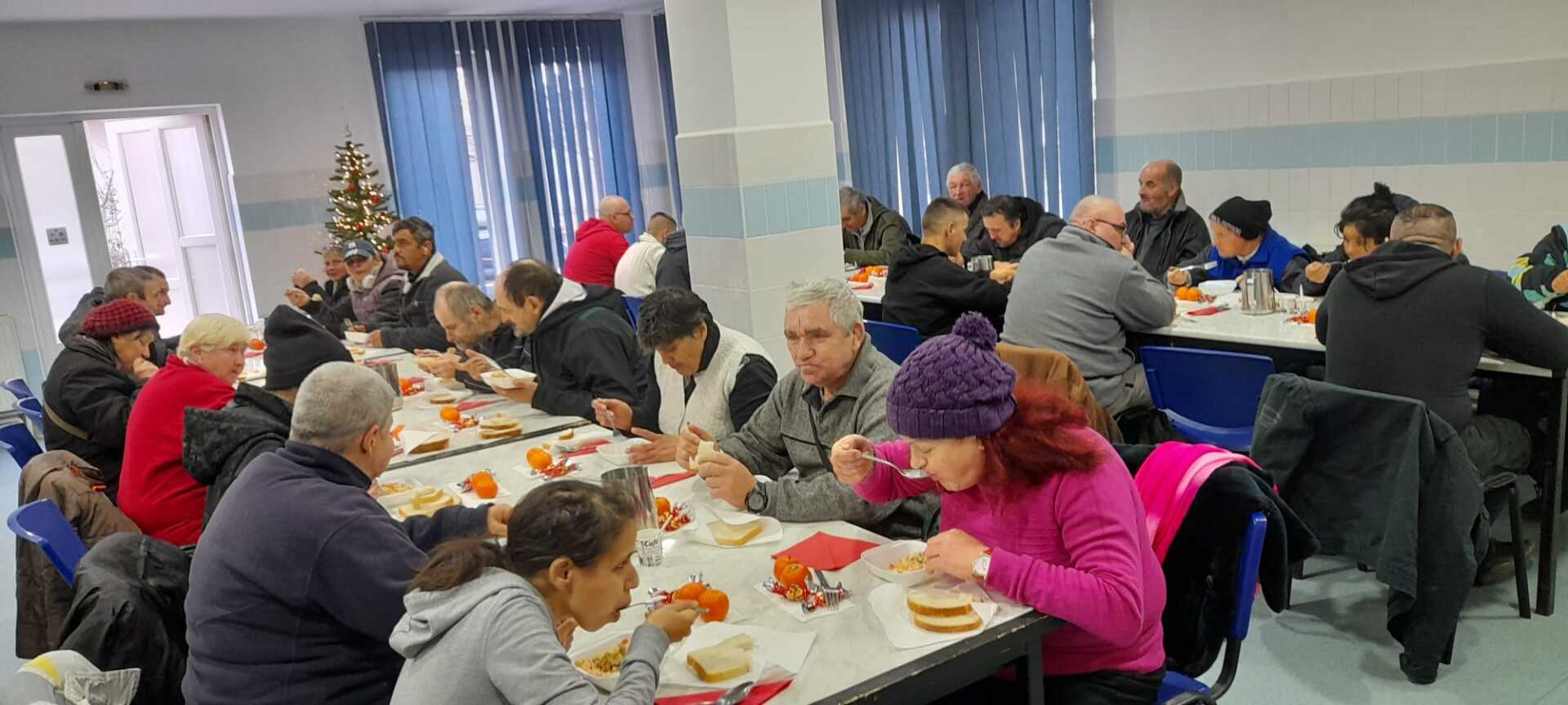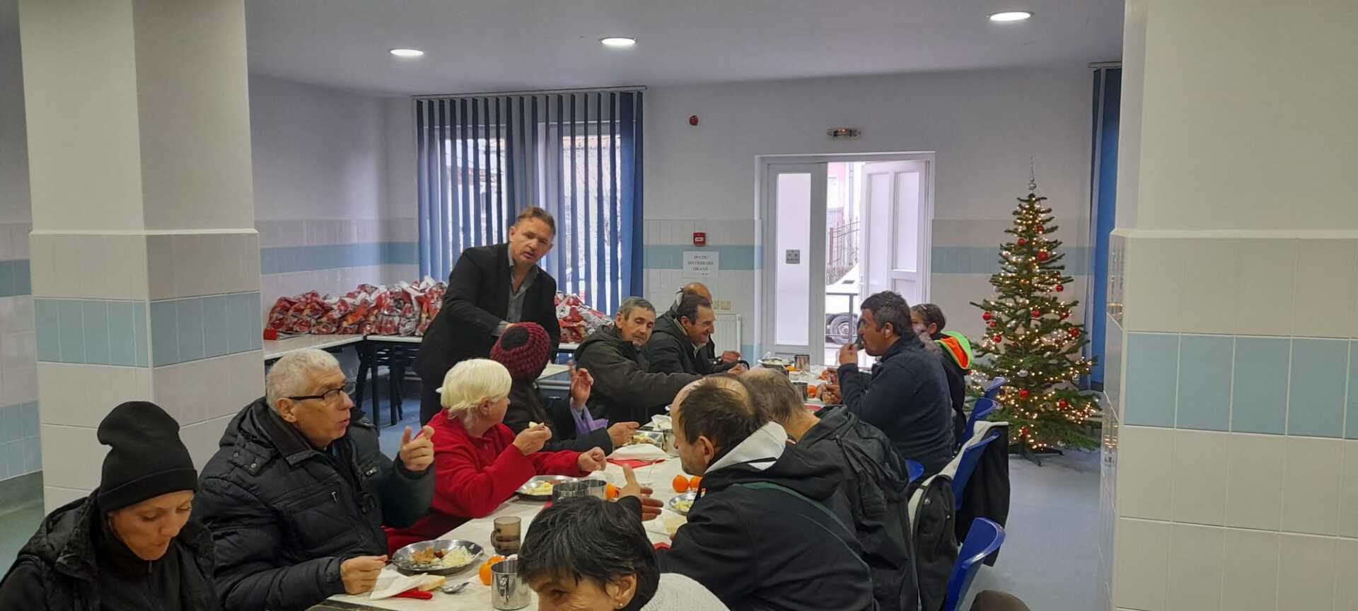Un moment aparte în viața de zi cu zi a beneficiarilor cantinei sociale este evenimentul care a avut loc astăzi, 22 decembrie a.c., la cantina socială. Sărbătorind, în avans, Nașterea Mântuitorului, am avut oaspeți de seamă la cantină, iar conducerea Asociației Caritas Eparhial a pus umărul lângă cel al voluntarilor prezenți la pregătirea sălii de mese, la servirea beneficiarilor pe toată durata prânzului, precum și la curățenia din sala de mese.