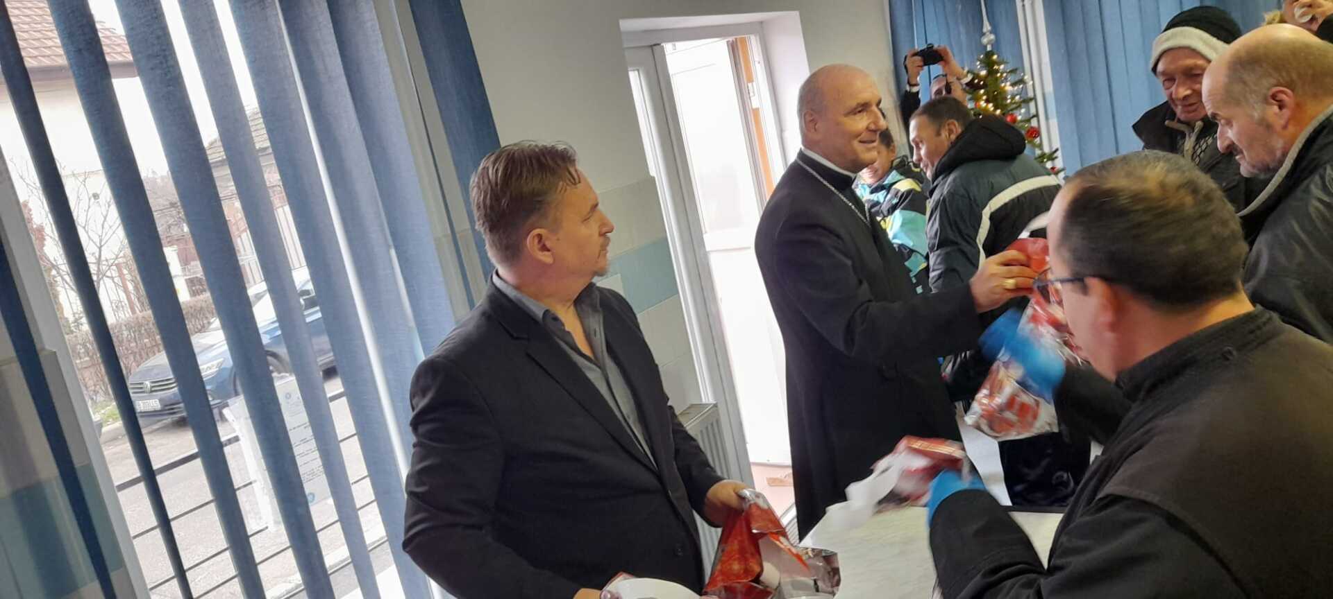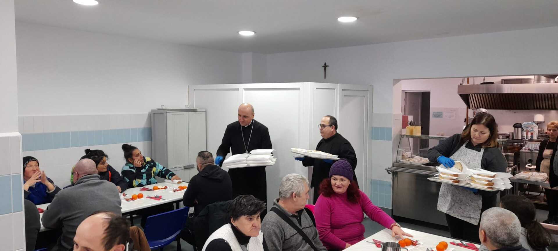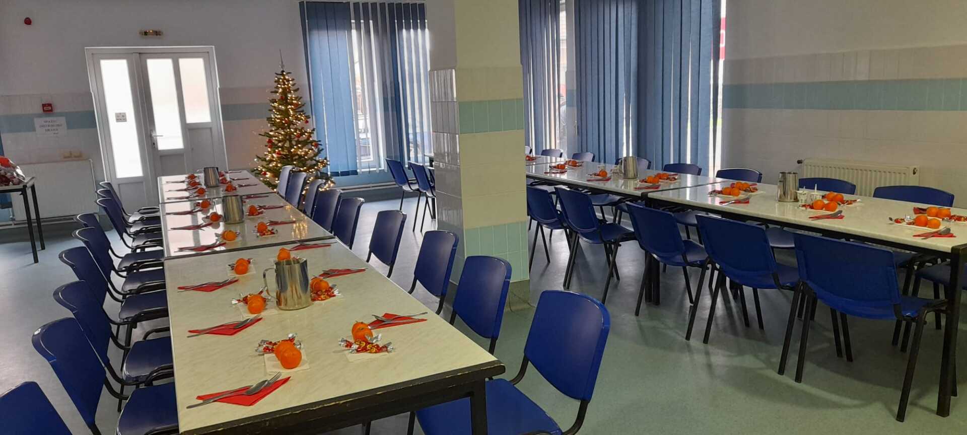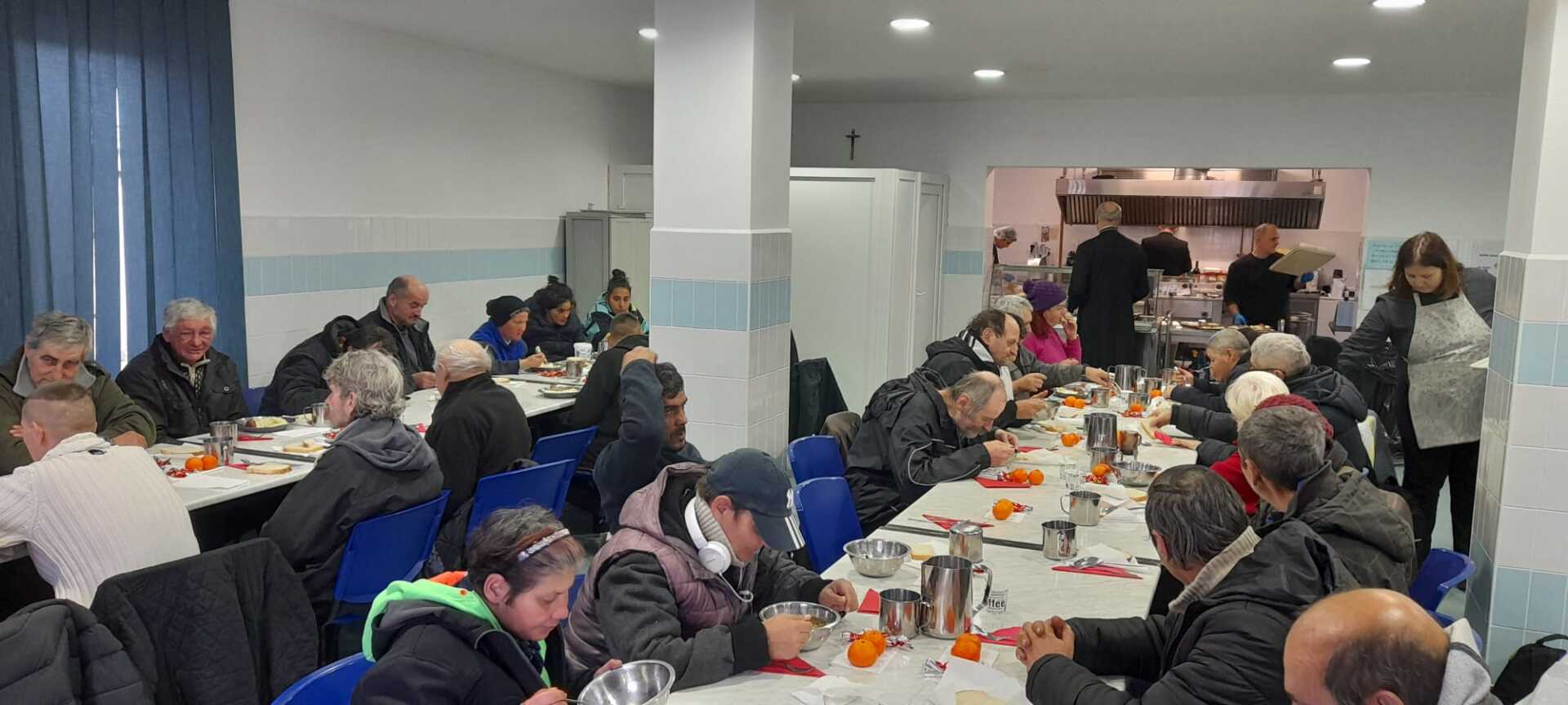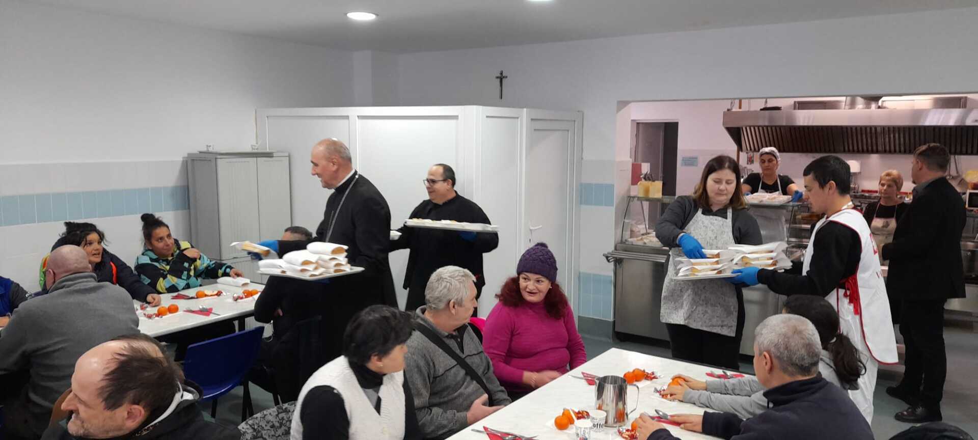 Un moment aparte în viața de zi cu zi a beneficiarilor cantinei sociale este evenimentul care a avut loc astăzi, 22 decembrie a.c., la cantina socială. Sărbătorind, în avans, Nașterea Mântuitorului, am avut oaspeți de seamă la cantină, iar conducerea Asociației Caritas Eparhial a pus umărul lângă cel al voluntarilor prezenți la pregătirea sălii de mese, la servirea beneficiarilor pe toată durata prânzului, precum și la curățenia din sala de mese.