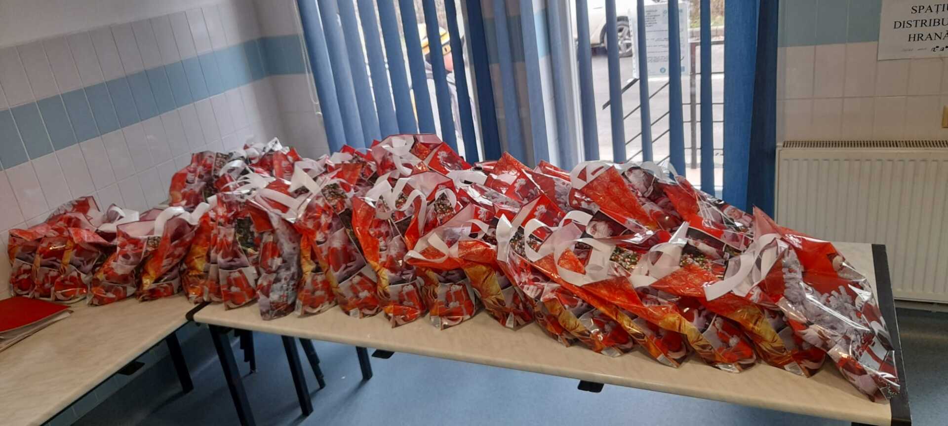 Dacă la intrarea în sala de mese, beneficiarii au văzut pe masă câte două clementine și câte două bomboane de pom, la plecarea din sala de mese, fiecare dintre ei a primit câte un pachet cu articole de îmbrăcăminte (ciorapi, indispensabili, mănuși, căciuli) care au fost achiziționate din cuantumul subvenției acordate de Direcția de Asistență Socială Oradea.