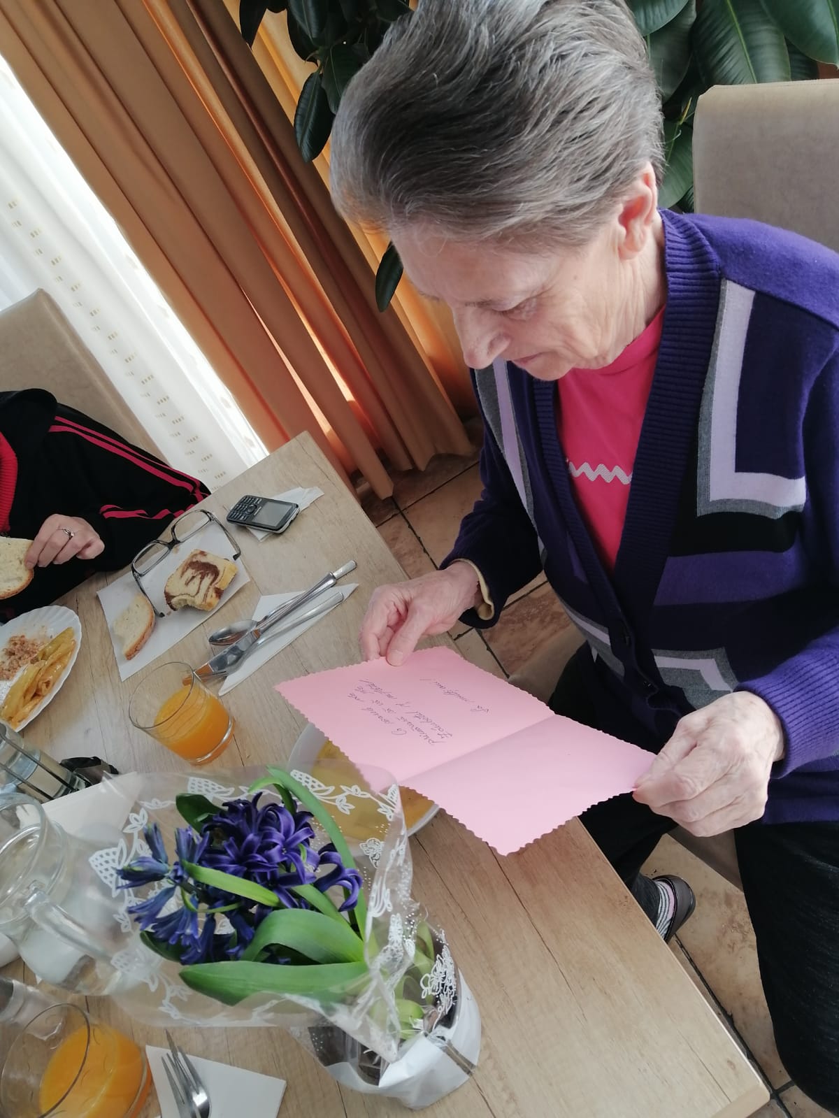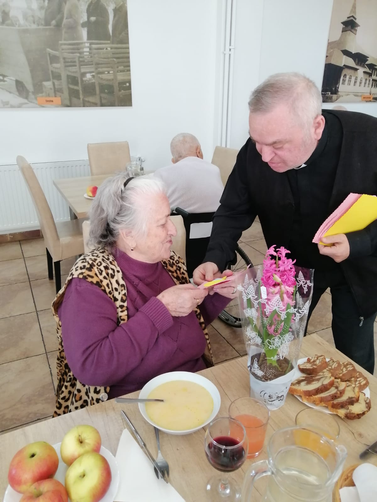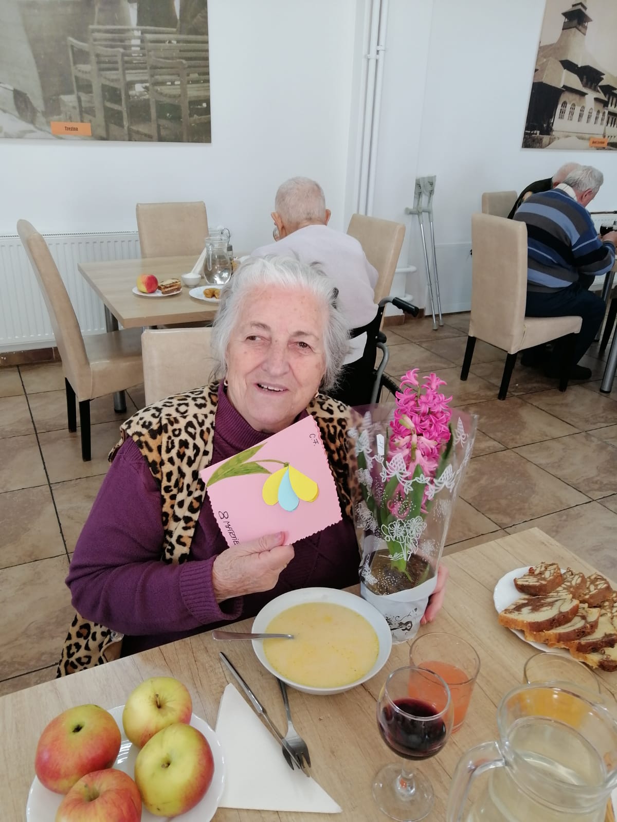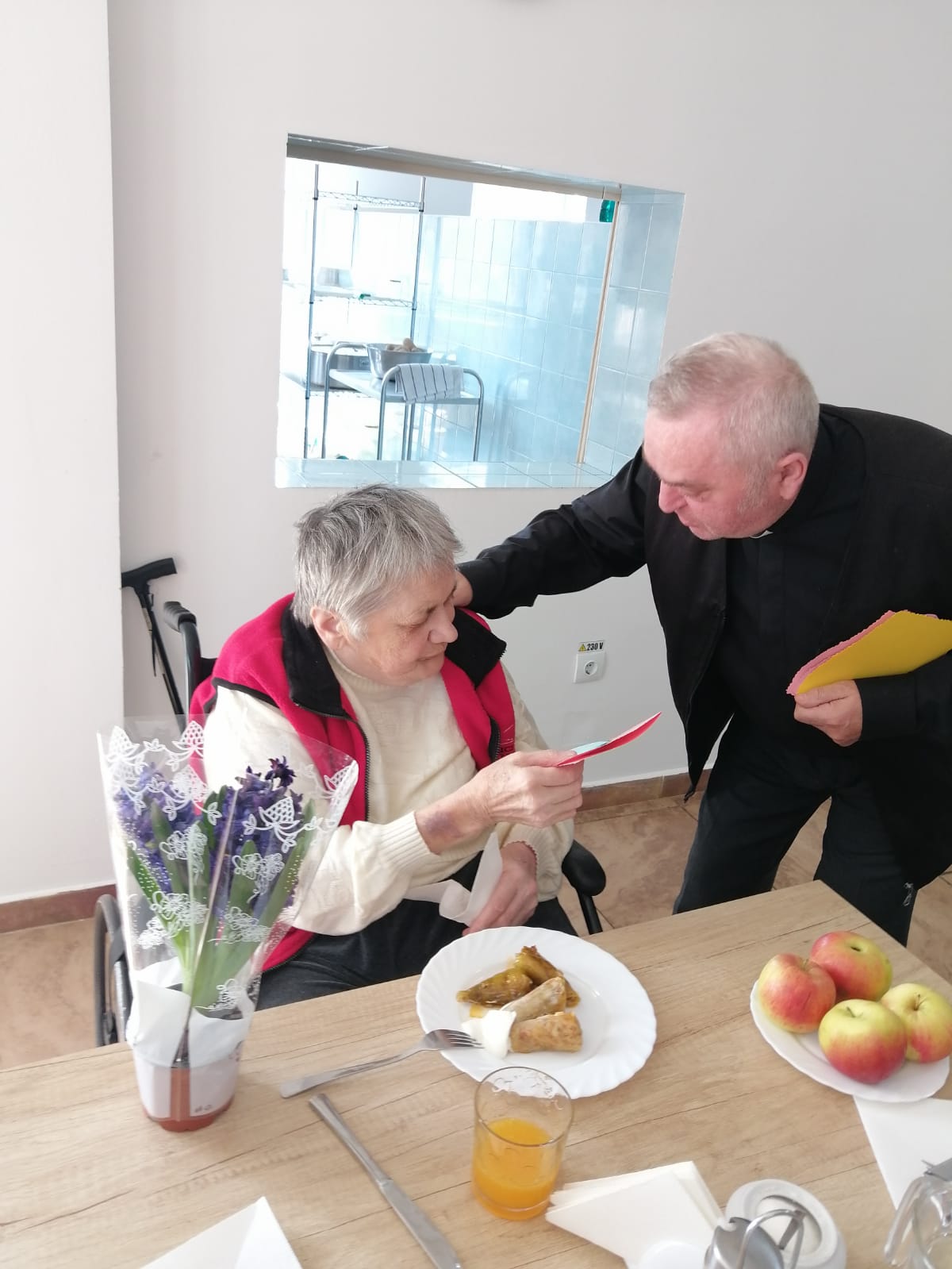 La Centrul Rezidențial "Casa Frențiu" am sărbătorit, luni 8 martie, a.c., Ziua Internațională a Femeii, prin cântec și voie bună. În dar, doamnele rezidente ale centrului au primit felicitări confecționate în cadrul atelierelor de creație și un buchet de zambile oferite de către beneficiarii centrului. Momentul a fost marcat de multe emoții, fiind rostită rugăciunea ”Tatăl Nostru” de către preotul Casei, părintele Dat și de tradiționalul cântec de „La Mulți Ani!”