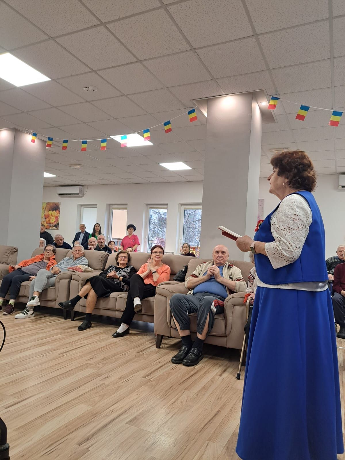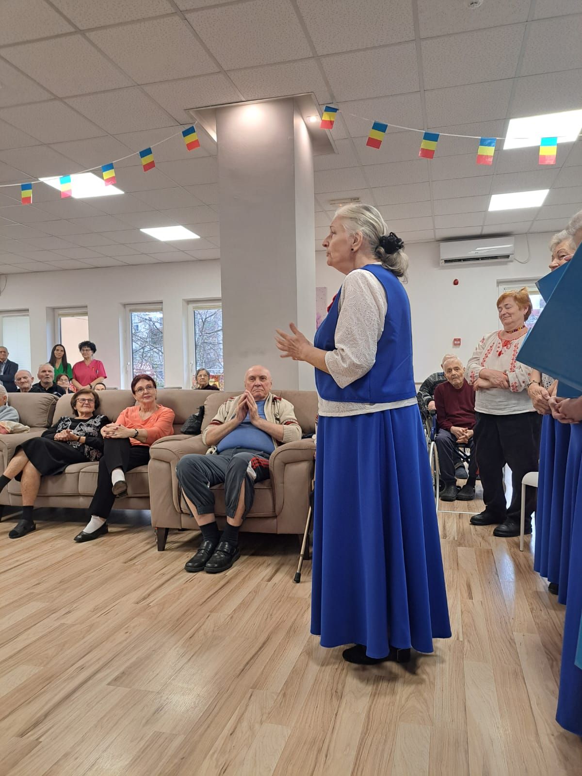 României, cântat cu emoție de toți cei prezenți. A urmat programul pregătit de oaspeții noștri: cântece patriotice, poezii recitate cu pasiune și colinde ce au adus cu ele atmosfera sărbătorilor de iarnă.
