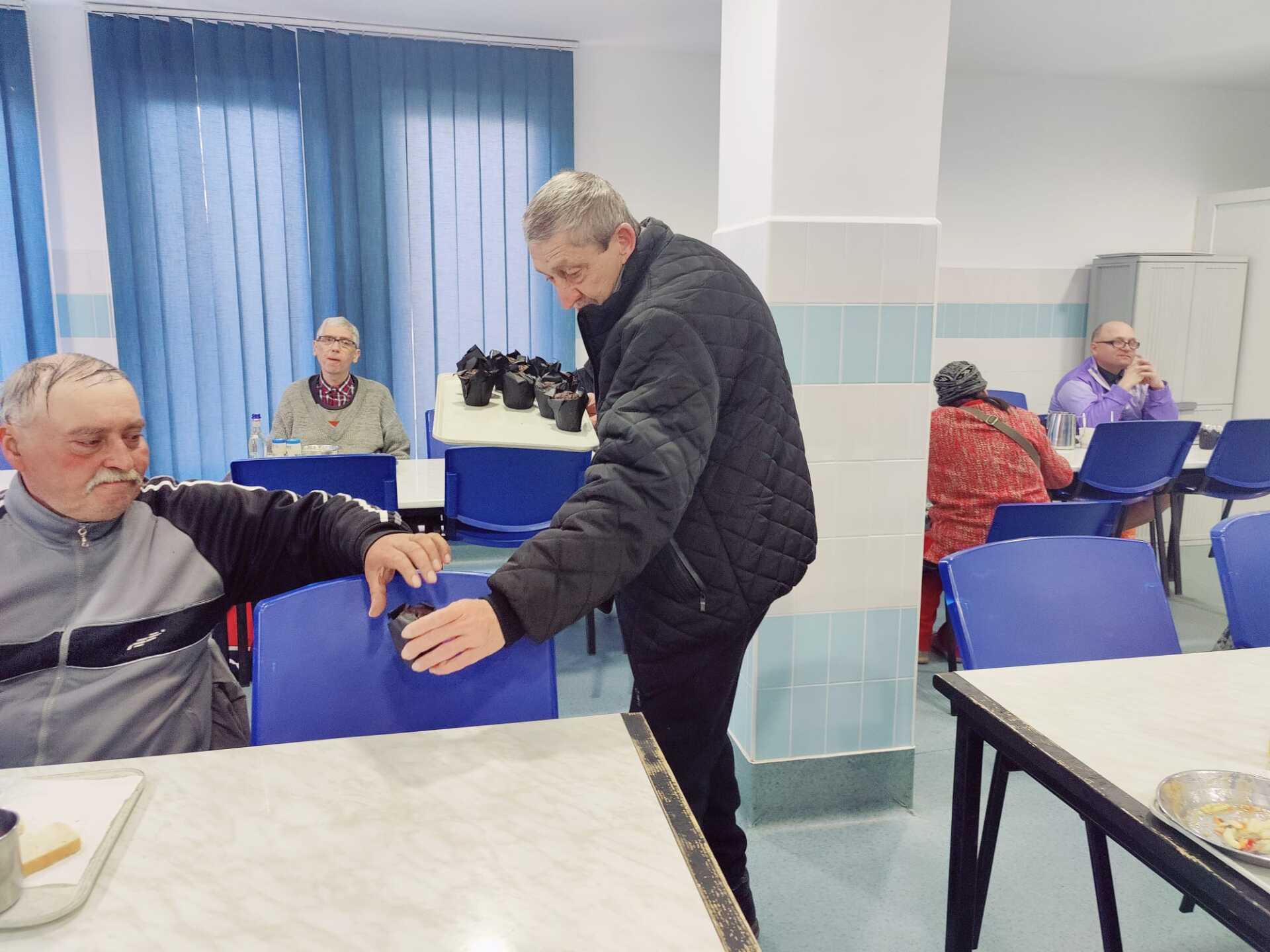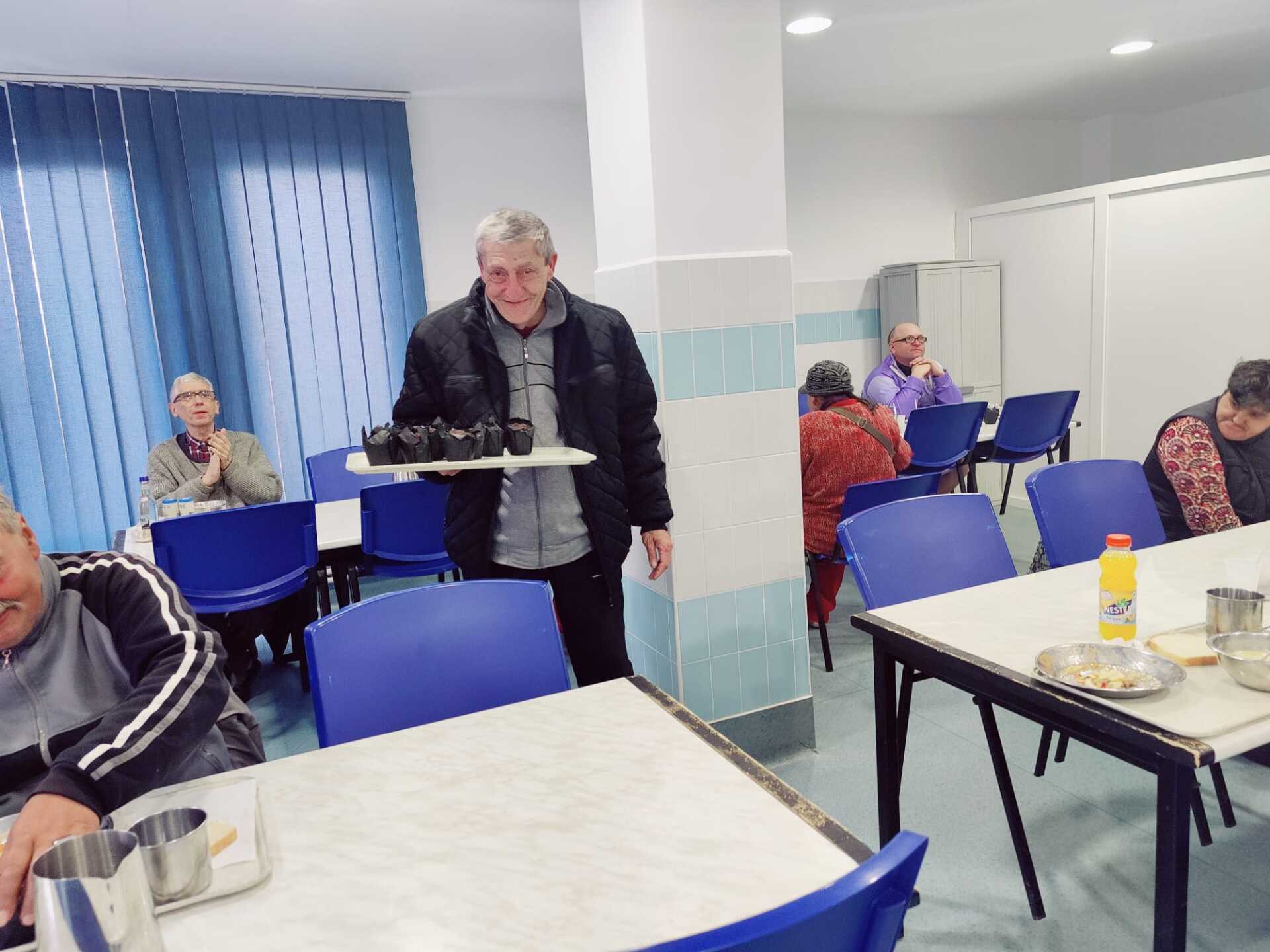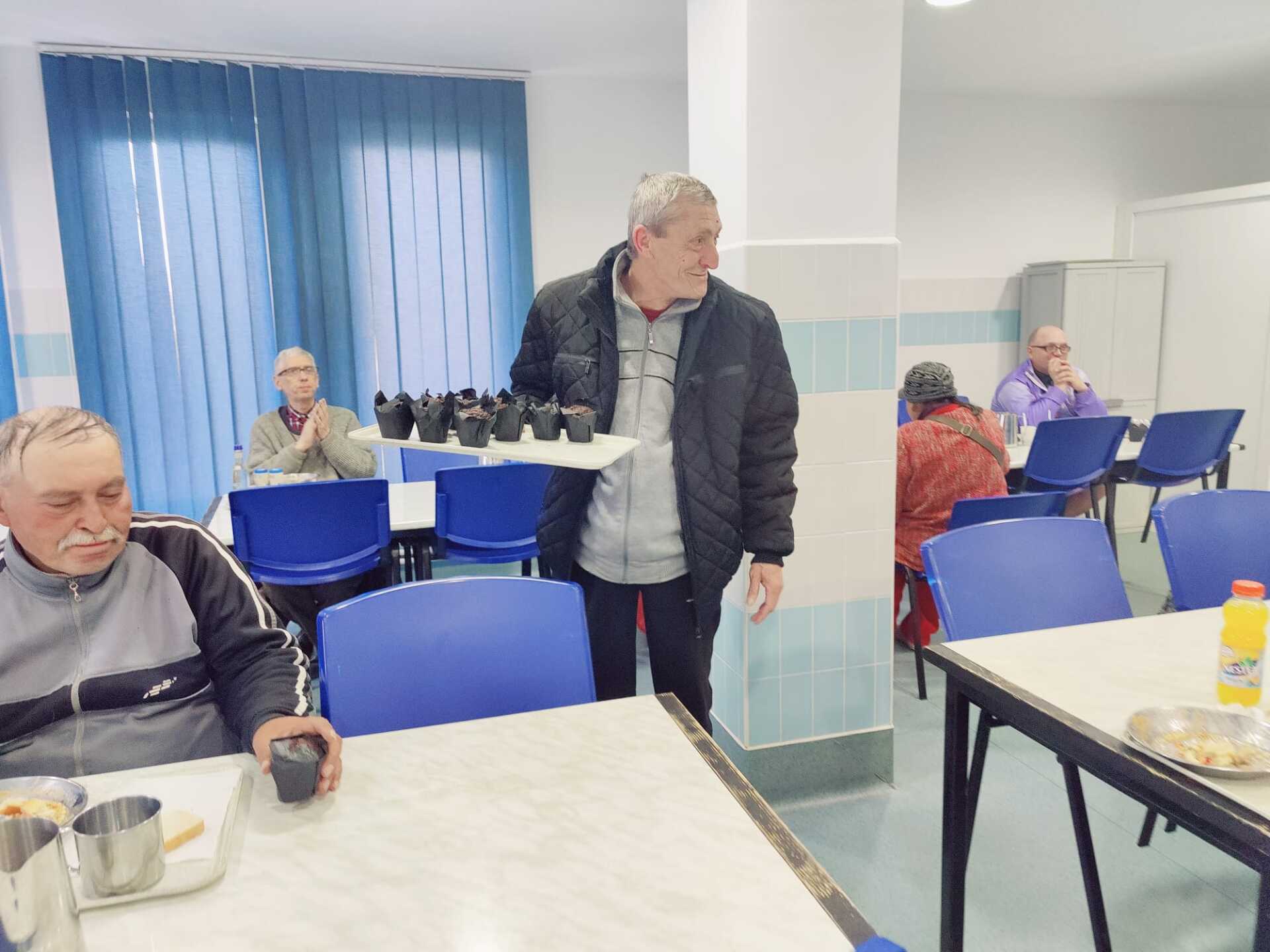 Ziua de 31 martie a.c. a adus zâmbet și sfială pe chipul beneficiarului care a oferit celor prezenți la masă un desert pentru a marca ziua sa de naștere din cursul acestei luni.