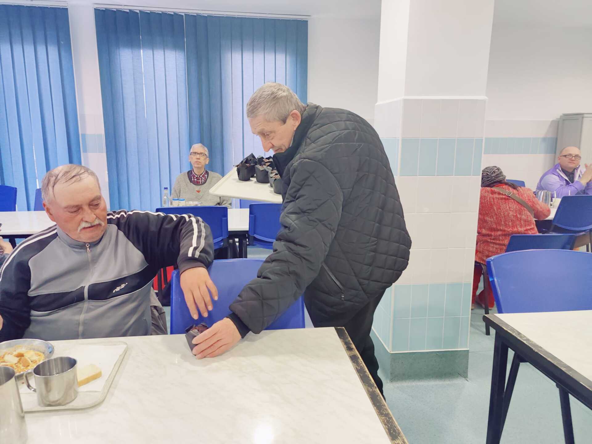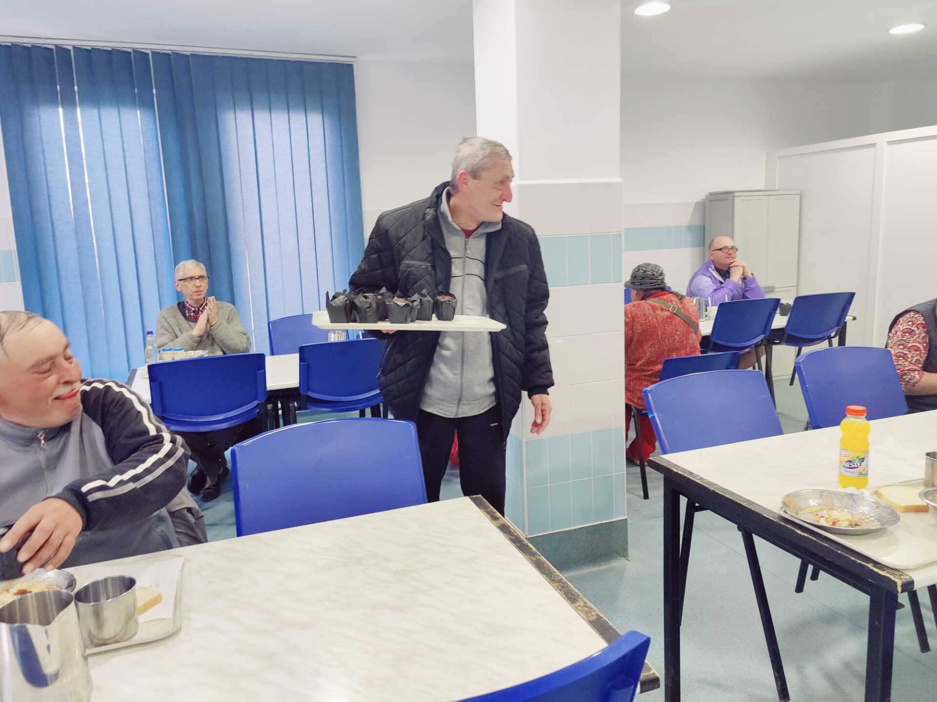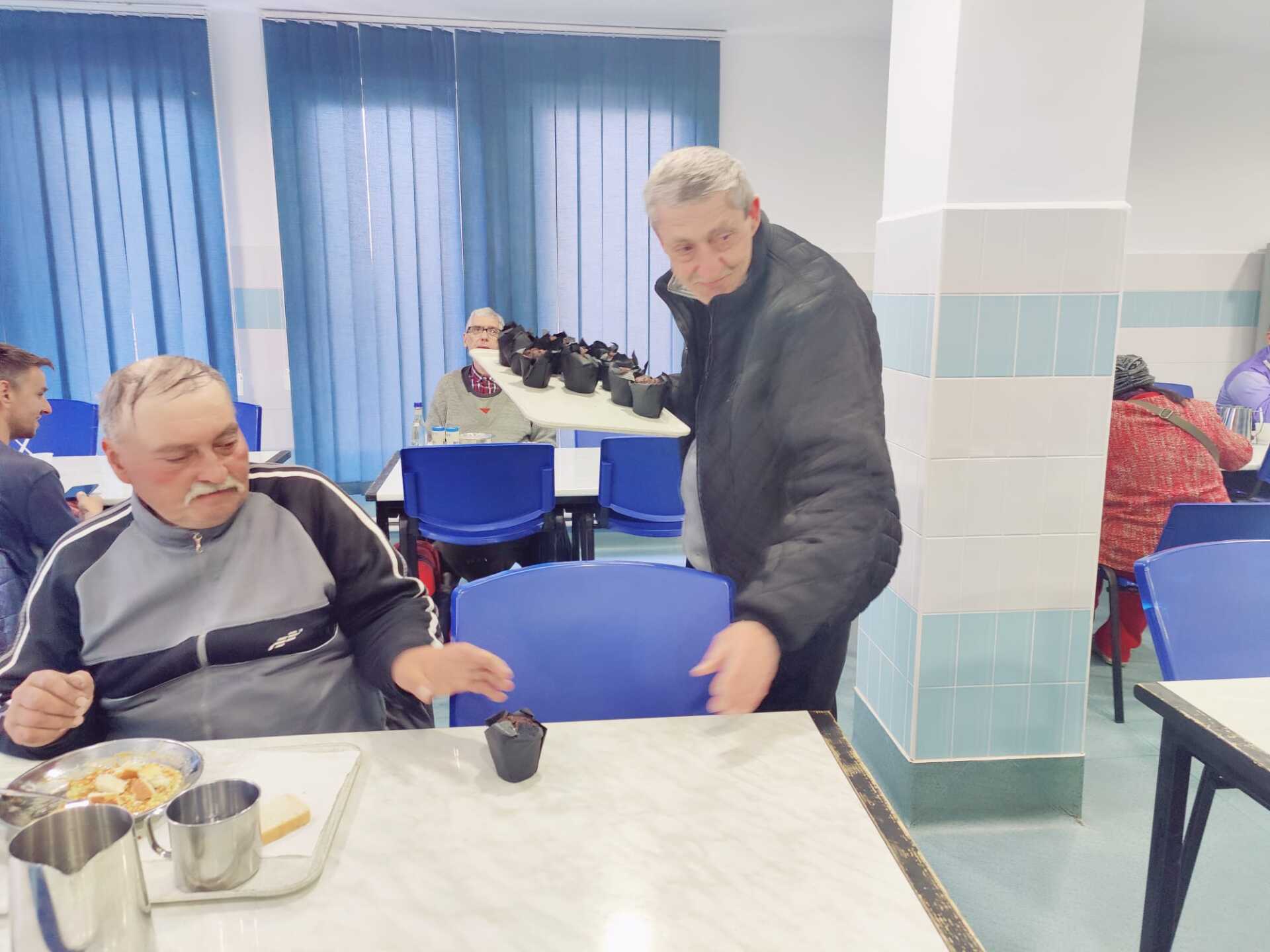 Ziua de 31 martie a.c. a adus zâmbet și sfială pe chipul beneficiarului care a oferit celor prezenți la masă un desert pentru a marca ziua sa de naștere din cursul acestei luni.