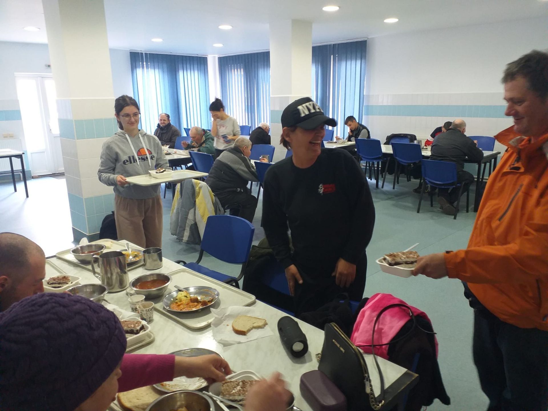 Pe de altă parte, au avut ocazia să vadă cum se desfășoară mesele festive și cât de mult ținem la atmosfera aceasta de grup social. Aniversările de la sfârșitul fiecărei luni sunt un alt moment din viața cantinei la care practicantele noastre au participat. Le-am cântat "La Mulți Ani!" împreună aniversaților și am primit mulțumirile și emoțiile pe care beneficiarii ni le transmit în aceste momente.
