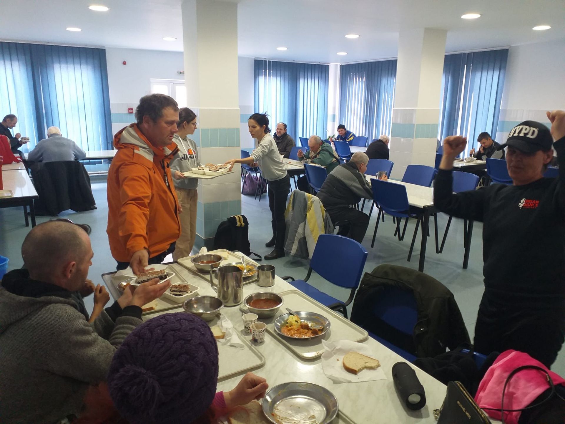 În primele întâlniri, ne-am cunoscut și am stabilit prioritățile acestei perioade care urmează și ne-am familiarizat cu documentele care stau la baza activității din cantina socială. Împreună, am pus accentul pe contactul direct cu beneficiarii cantinei, astfel că cele două studente au participat la discuțiile libere dintre beneficiari, implicându-se în activitatea Dușurile sociale și interacționând cu aceștia. Astfel, au văzut cum persoanele fără adăpost devin de nerecunoscut după ce sunt curați și au un aspect îngrijit. Au putut observa cum starea lor devine alta pe măsură ce vin să se îmbăieze. Sunt mai senini, mai binevoitori și socializează într-un mod mai prietenos până la ora prânzului, dar și în timpul servirii mesei.