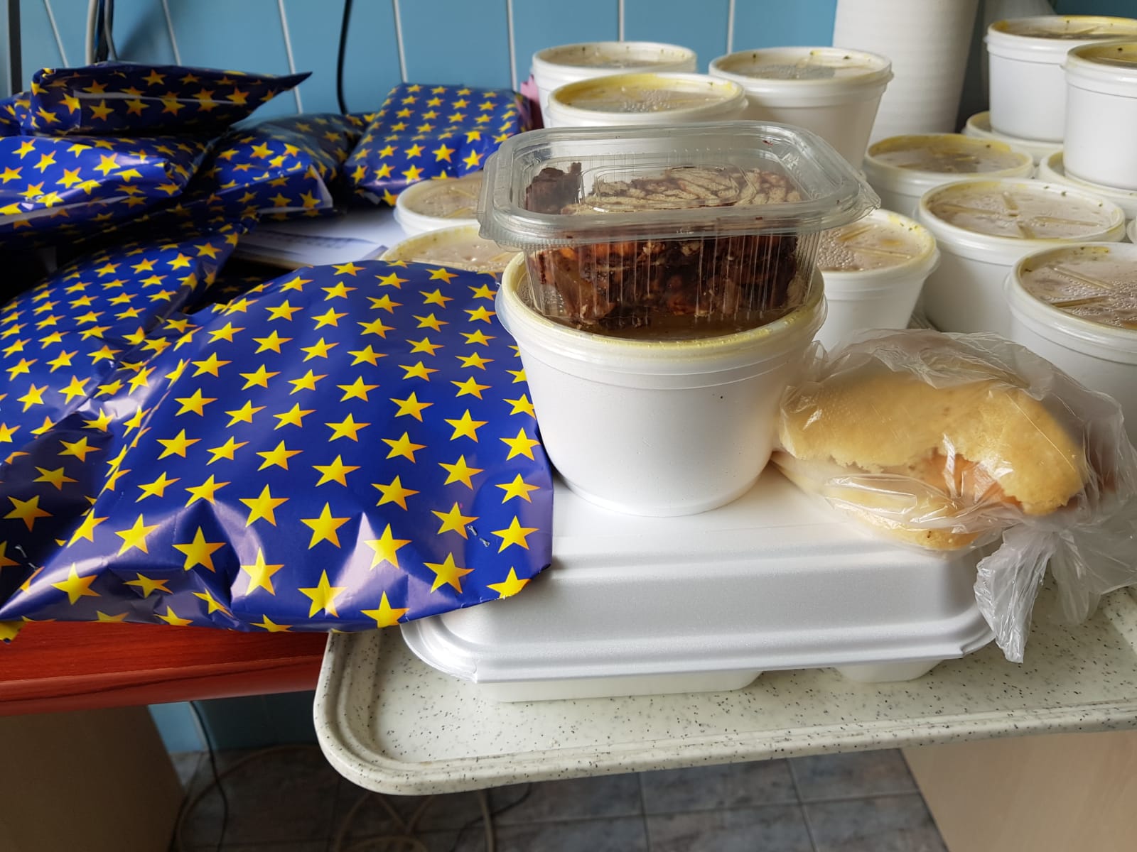 Și la cantina socială a Asociației Caritas Eparhial, din grijă și din atenție, cu prilejul acestei zile, beneficiarii serviciului nostru au avut parte de o mică surpriză dulce, atunci când au primit hrana caldă, un desert concretizat în salam de biscuiți, pregătit în bucătăria noastră, însoțit de un pachet care cuprindea articole pentru lenjeria personală.