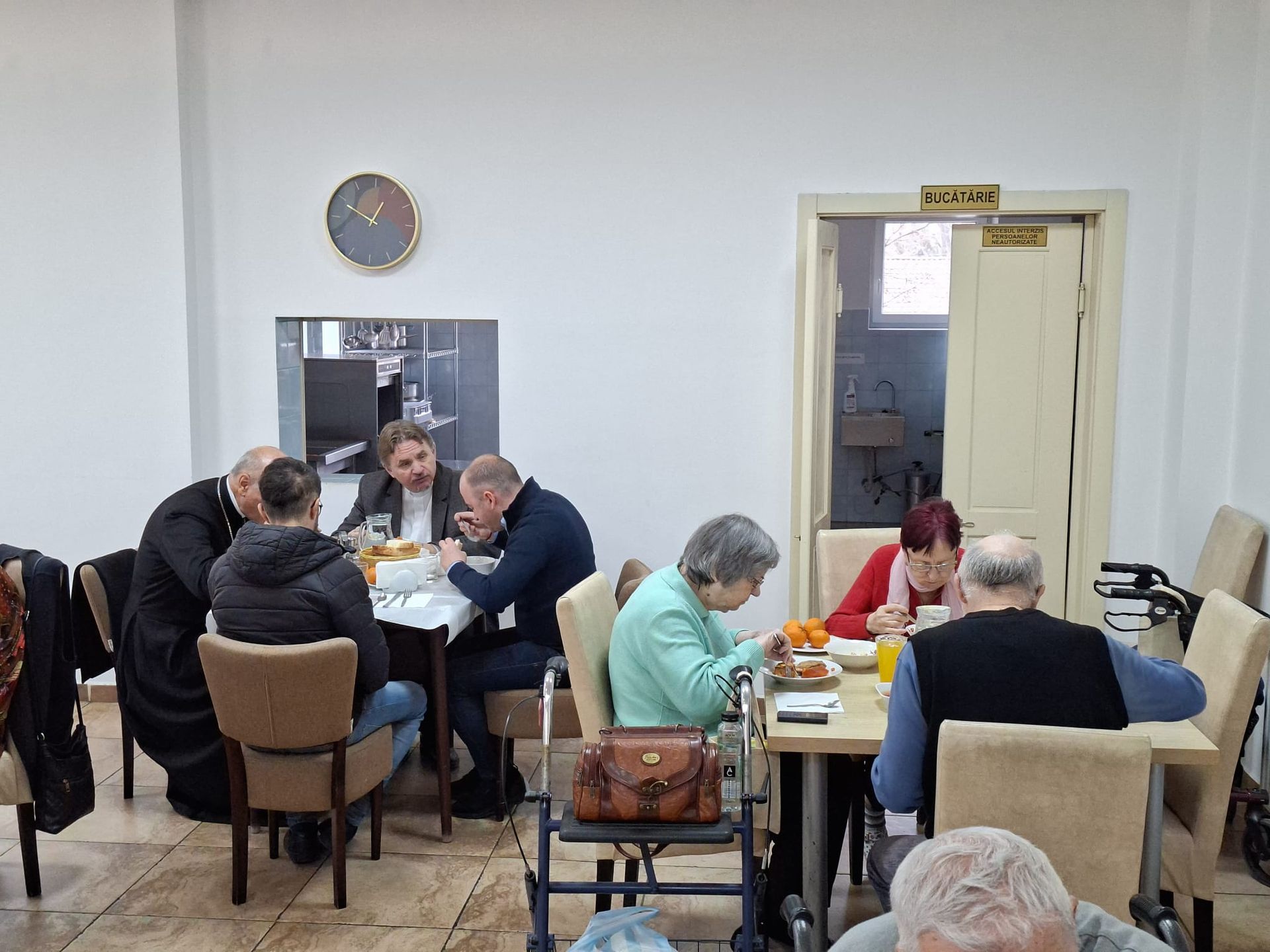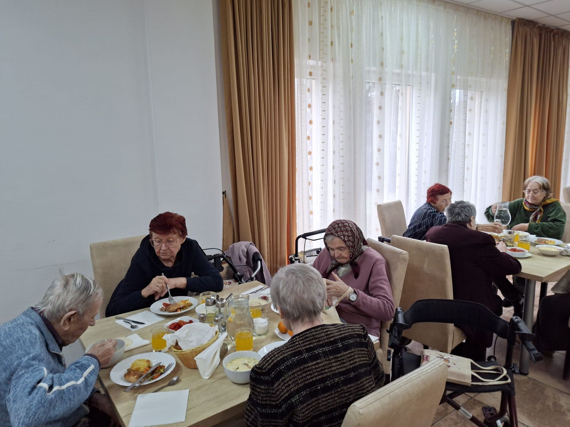Întâlnirea a continuat cu masa de prânz, iar rezidenții care și-au sărbătorit ziua de naștere în luna decembrie au fost felicitați. Am cântat „La mulți ani!”, iar momentul a fost completat de servirea tortului, într-o notă firească de bună dispoziție.