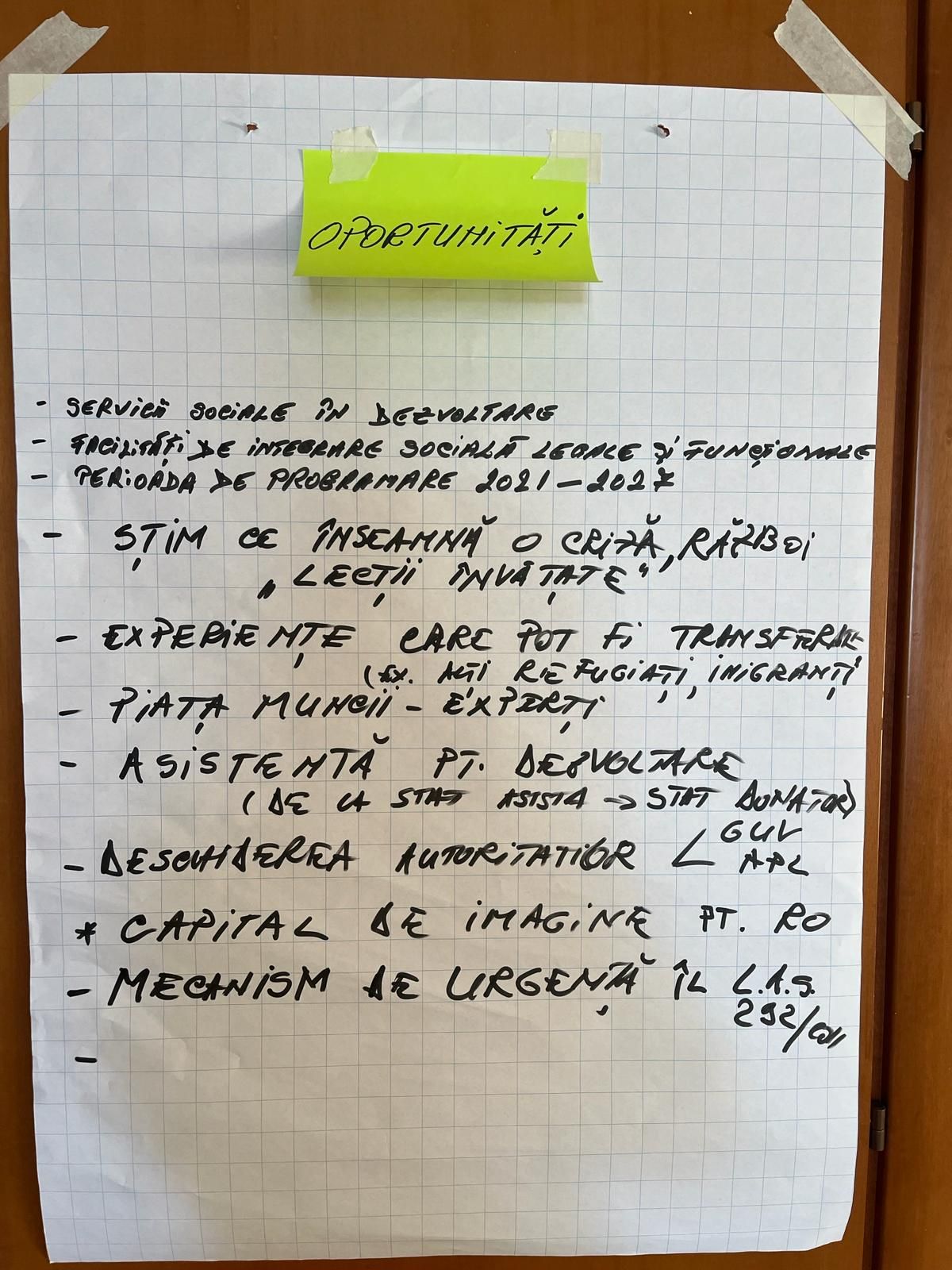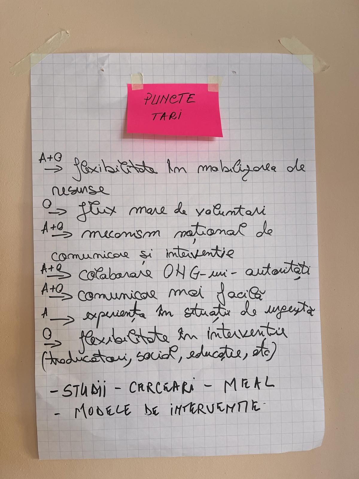 În cadrul acestui workshop, pornind de la lecțiile învățate și experiențele pe care ONG-urile și autoritățile le-au avut, s-a discutat despre posibilitatea de a le capitaliza într-un model de asistență umanitară și socială a refugiaților derulat prin parteneriat public – privat pentru a crește capacitatea de coordonare în situații de criză între cei mai relevanți actori. De asemenea, s-a început un proces de planificare strategică pentru perioada 2024–2025 prin care să se stabilească obiectivele comune privind asistența socială a persoanelor strămutate în România.