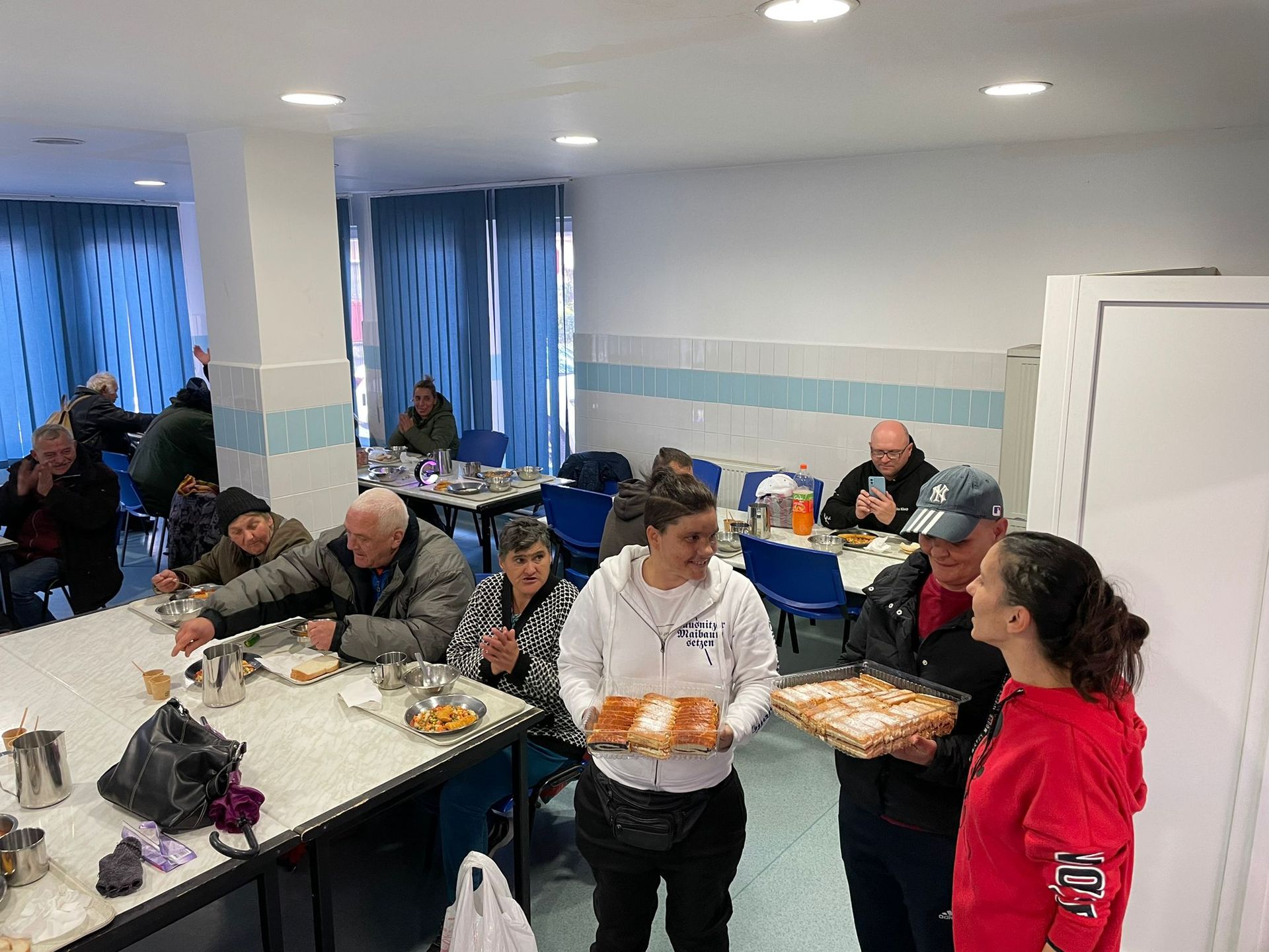 Obiceiul nostru de a încerca să oferim beneficiarilor cantinei sociale zâmbete și un strop de bucurie a înveselit astăzi, 21 noiembrie a.c., persoanele care au fost la masa de prânz.