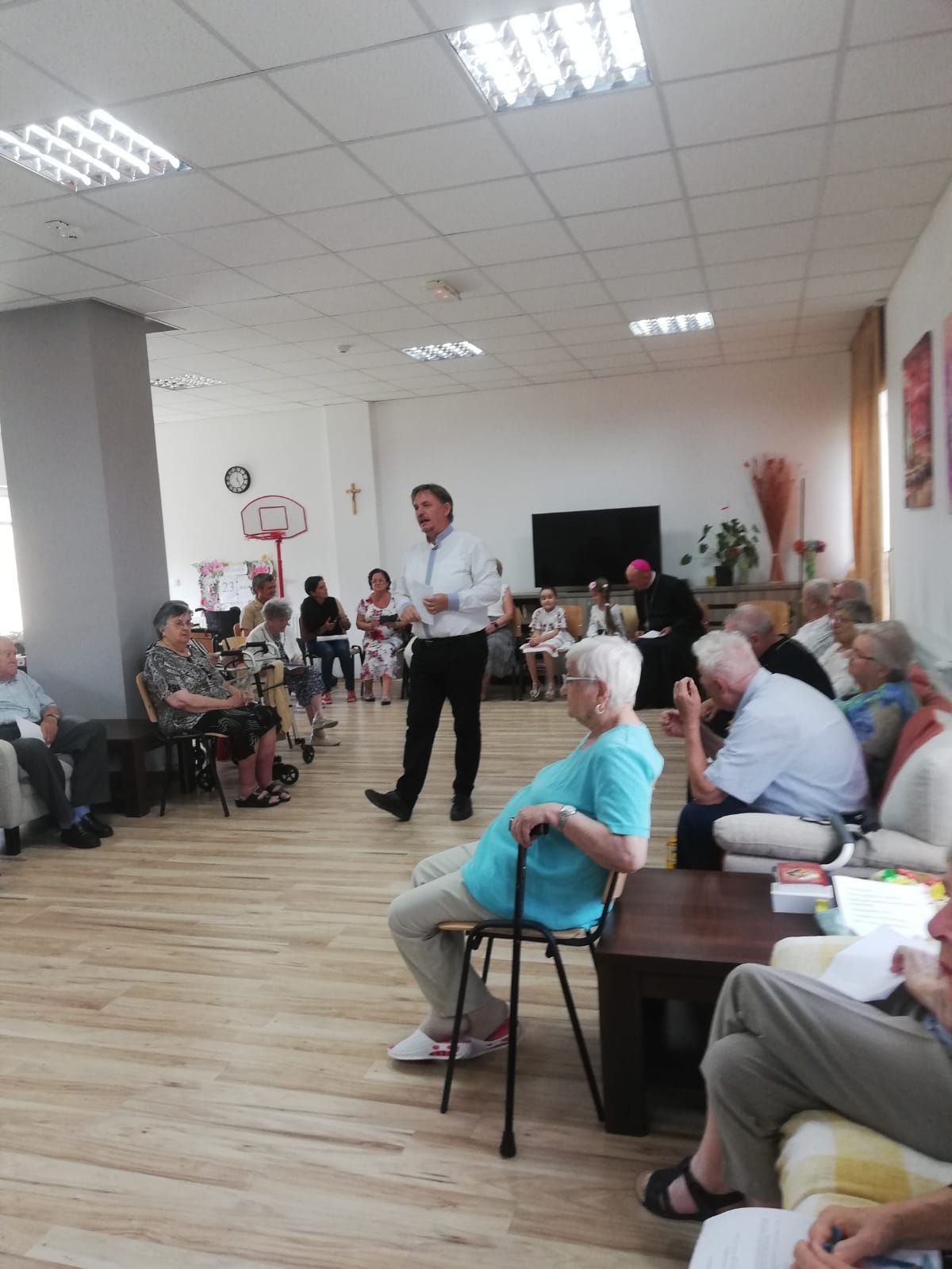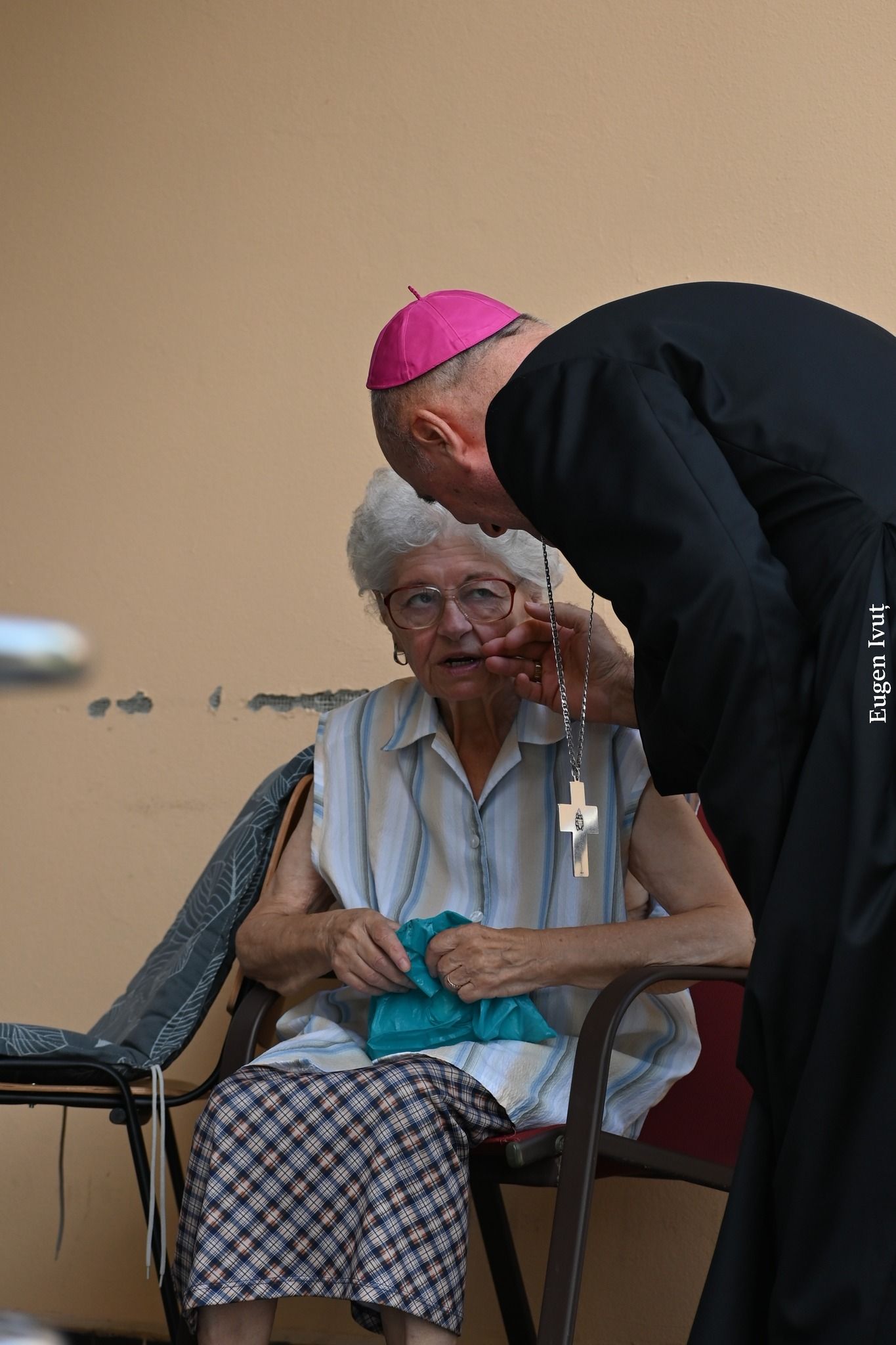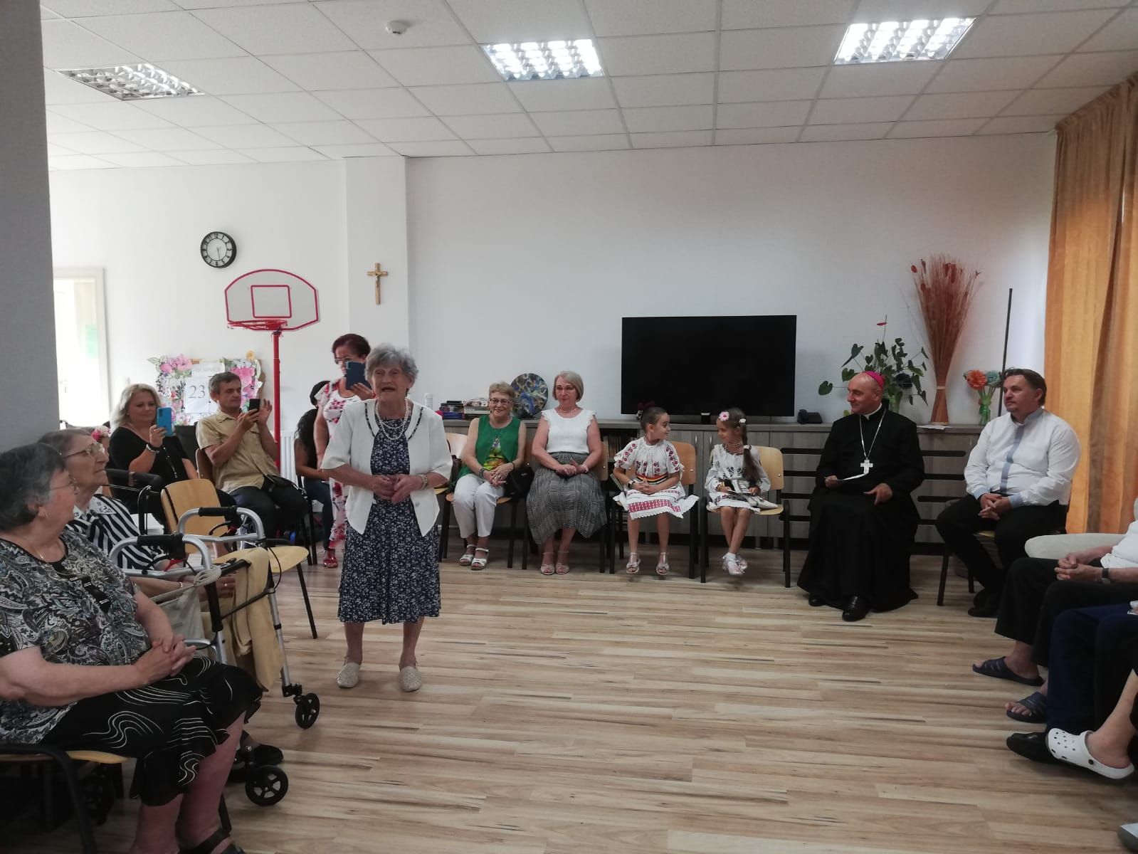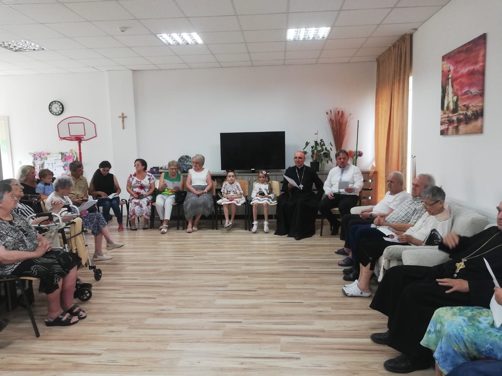 În cuvântul său adresat bunicilor rezidenți, PSS Virgil a spus: ”Pentru toate bunele și relele din viața noastră trebuie să îi mulțumim înainte de toate lui Dumnezeu. Toți am avut și mai bune și mai puțin bune, dar dumneavoastră aveți acum înțelepciunea vieții. Și cu această înțelepciune a vieții vă regăsiți cu toții împreună în această casă de oaspeți. Și ne spune Mântuitorul că ”acolo unde sunt doi sau trei și eu sunt împreună cu ei” și asta înseamnă că Domnul este în fiecare zi cu dumneavoastră și printre dumneavoastră. De aceea eu vă îndemn să îi mulțumim Domnului, să ne bucurăm de zilele pe care le avem, așa cum sunt, mai bune sau mai grele și, în același timp, să ne ajutăm unii pe alții. La intrare mi-au spus două doamne că ”ne ajutăm una pe alta”. Este extraordinar de frumos când reușim, așa cum suntem, să ne ajutăm unul pe celălalt chiar dacă, foarte adesea, nu putem să ne ajutăm unul pe celălalt decât cu un zâmbet sau un cuvânt bun. Dar dacă putem să îi spunem celui de lângă noi un cuvânt bun și să-i zâmbim, am făcut cel mai mare și mai frumos lucru. Eu vă doresc tuturor ani buni și binecuvântați de Domnul căci, dacă există un pic de bunătate și binecuvântarea Domnului, putem să mergem înainte. Lăudat să fie Isus Cristos. Vă îmbrățișez pe toți!”