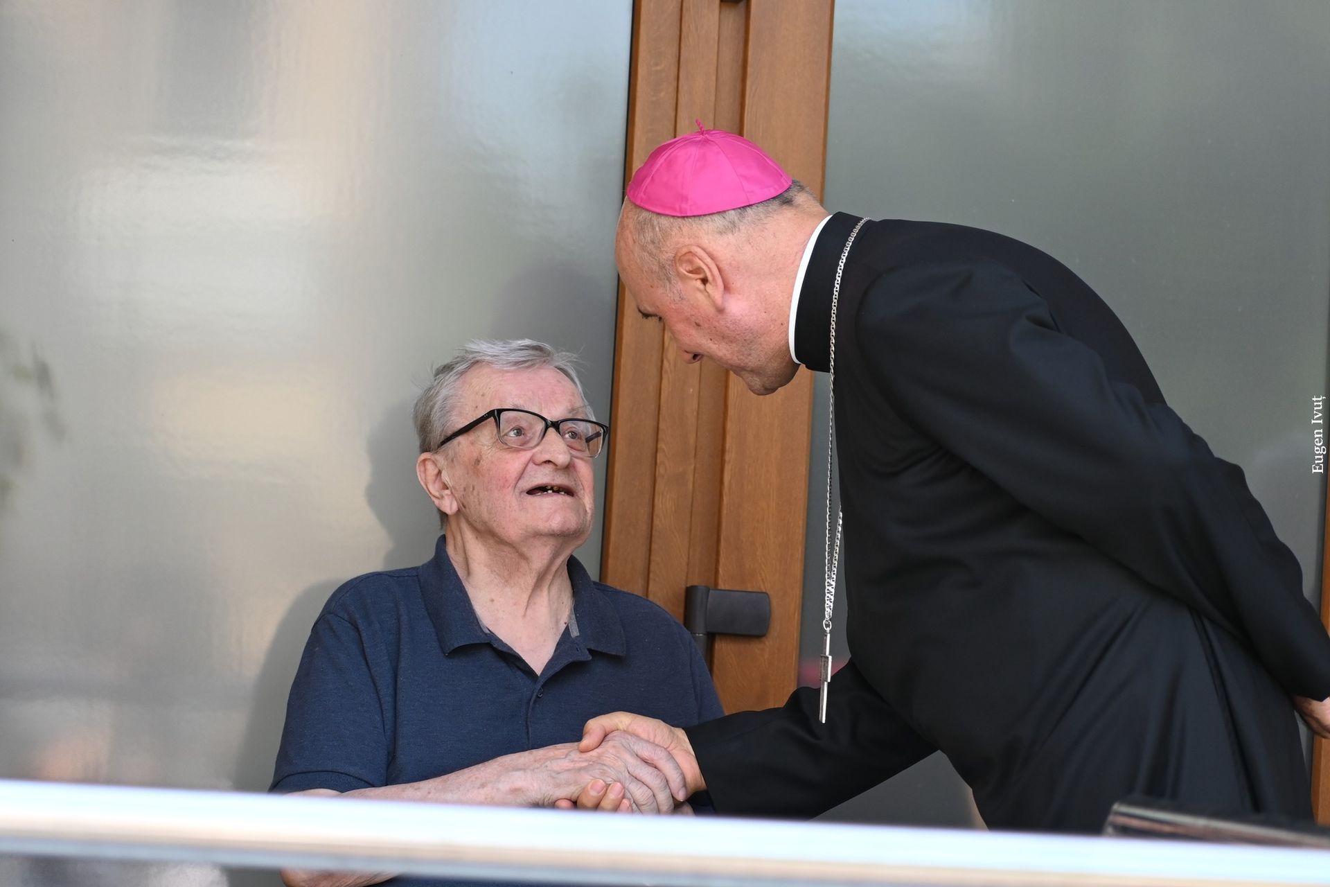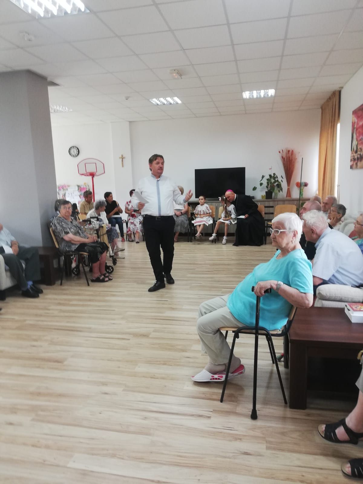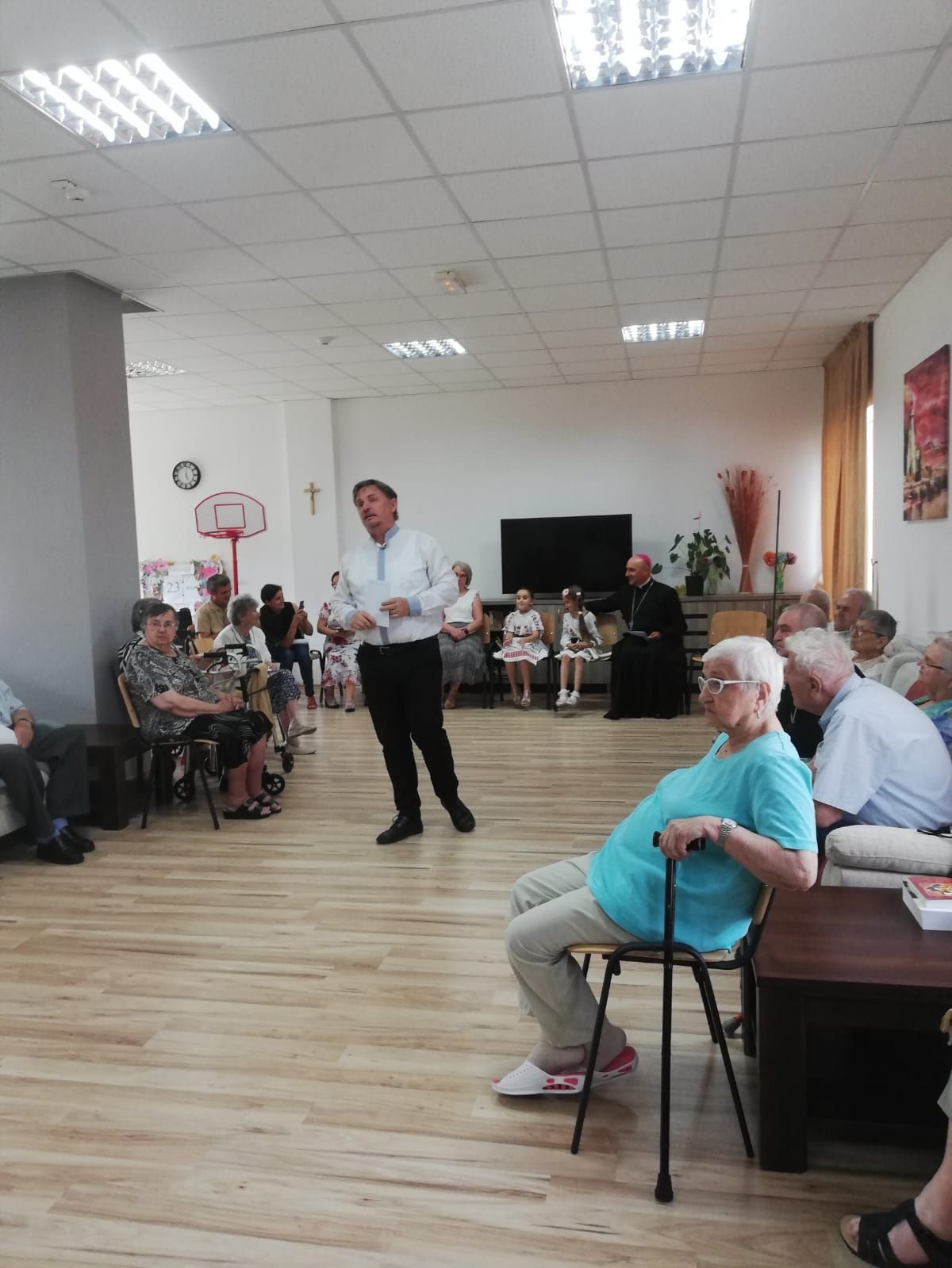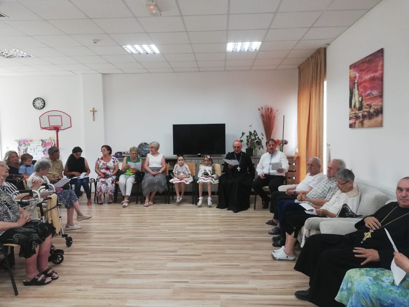 În cuvântul său adresat bunicilor rezidenți, PSS Virgil a spus: ”Pentru toate bunele și relele din viața noastră trebuie să îi mulțumim înainte de toate lui Dumnezeu. Toți am avut și mai bune și mai puțin bune, dar dumneavoastră aveți acum înțelepciunea vieții. Și cu această înțelepciune a vieții vă regăsiți cu toții împreună în această casă de oaspeți. Și ne spune Mântuitorul că ”acolo unde sunt doi sau trei și eu sunt împreună cu ei” și asta înseamnă că Domnul este în fiecare zi cu dumneavoastră și printre dumneavoastră. De aceea eu vă îndemn să îi mulțumim Domnului, să ne bucurăm de zilele pe care le avem, așa cum sunt, mai bune sau mai grele și, în același timp, să ne ajutăm unii pe alții. La intrare mi-au spus două doamne că ”ne ajutăm una pe alta”. Este extraordinar de frumos când reușim, așa cum suntem, să ne ajutăm unul pe celălalt chiar dacă, foarte adesea, nu putem să ne ajutăm unul pe celălalt decât cu un zâmbet sau un cuvânt bun. Dar dacă putem să îi spunem celui de lângă noi un cuvânt bun și să-i zâmbim, am făcut cel mai mare și mai frumos lucru. Eu vă doresc tuturor ani buni și binecuvântați de Domnul căci, dacă există un pic de bunătate și binecuvântarea Domnului, putem să mergem înainte. Lăudat să fie Isus Cristos. Vă îmbrățișez pe toți!”