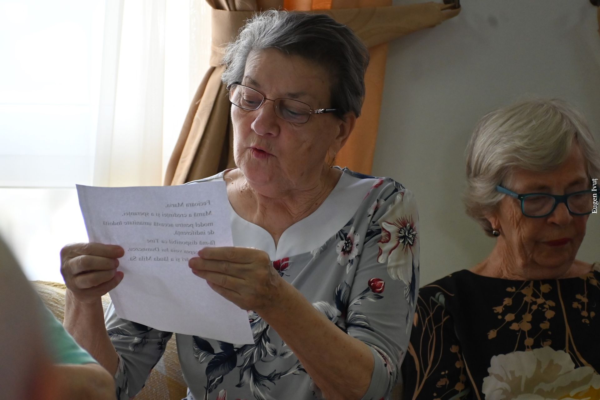 După acest cântec, care a făcut să curgă lacrimi din ochii multora, bunicii rezidenți s-au retras la cină, iar tinerii și cei mai mici au servit un sandvici și o înghețată oferite de coordonatoarea centrului, doamna Miruna Moza.